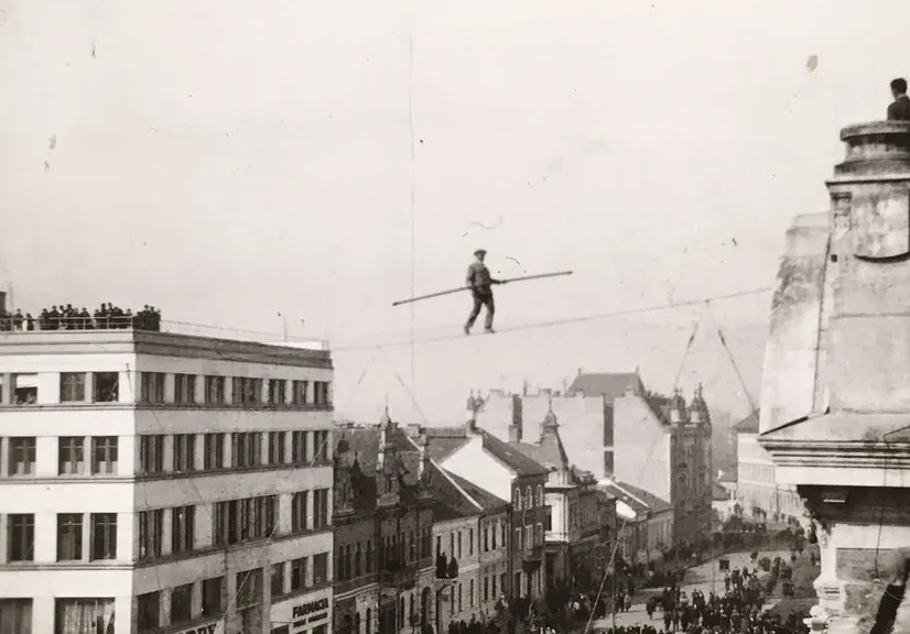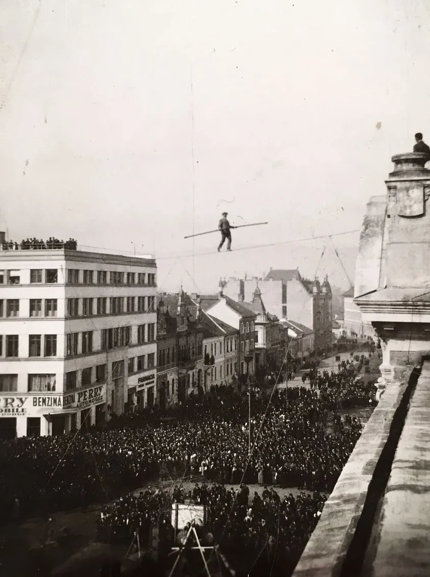 Acrobatul Arturo Strohschneider a mers pe sârmă la Cluj, în 1934 - FOTO