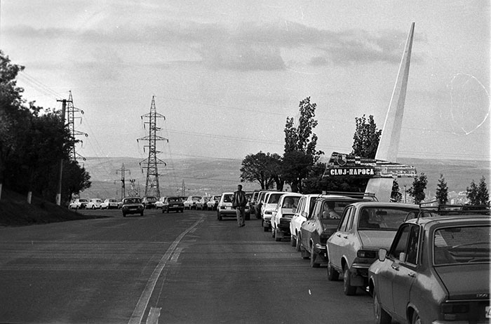 În Cluj de regulă stateam la coada la benzinaria ”Peco” de pe Calea Turzii din strategie, pentru a nu porni motorul sau împinge, dar coada era adeseori până în vârful pantei, în Feleac (cca 3-4 km). Stăteai ca boul în coadă, pentru că uneori se termina benzina, aflai după o vreme, dar mai stăteai, poate se mai bagă. Uneori și 2-3 zile stătea mașina în coadă, recordul a fost o săptămână. Mai veneai, mai plecai, dacă se mișca coada și nu erai la mașină rămâneai pe loc, ghinion! Făceam cu schimbul ”la coadă”, deși eram under-age, era suficient cât să scot frâna și să las mașina să alunece câțiva metri, sau să o împing”, și-a adus aminte un clujean.