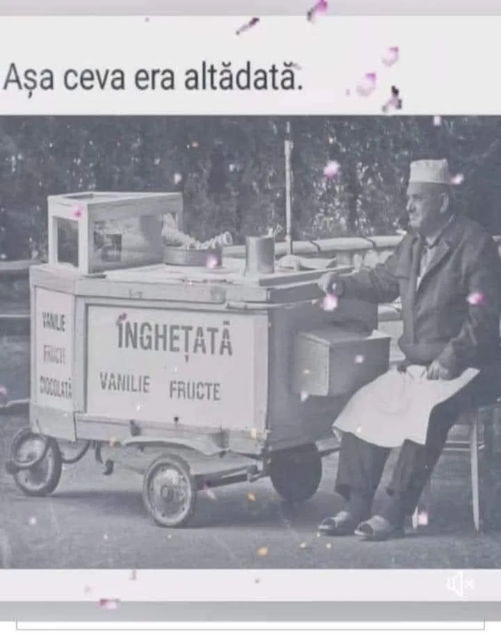 Fotografia de mai jos expune exact cum arăta ghereta pe roți, din care se servea înghețată. Așa ceva se mai poate vedea numai în Turcia, unde comercianți ambulanți de înghețată sunt la tot pasul.