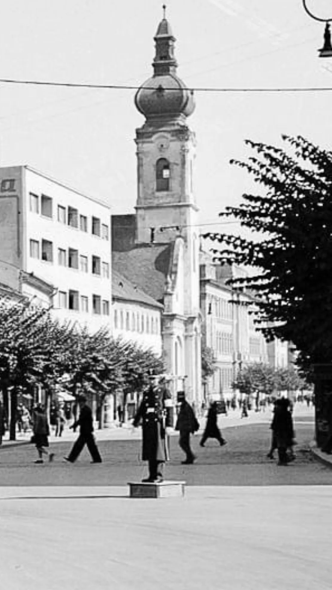 Imaginea de mai jos a fost surprinsă în 1940, la intersecția Bulevardului 21 Decembrie 1989 cu strada Regele Ferdinand. Bărbații din imagine sunt îmbrăcați la costum, fiind probabil functionari de la birourile din centru.