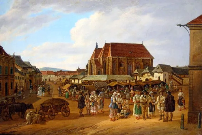 Piața Matei Corvin la 1836 (Sursă: Muzeul Național Brukenthal)