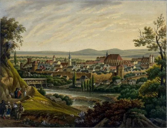 Clujul la 1823 - Litografie în ulei de Franz Jaschke (Sursă: Bildarchiv Austria)
