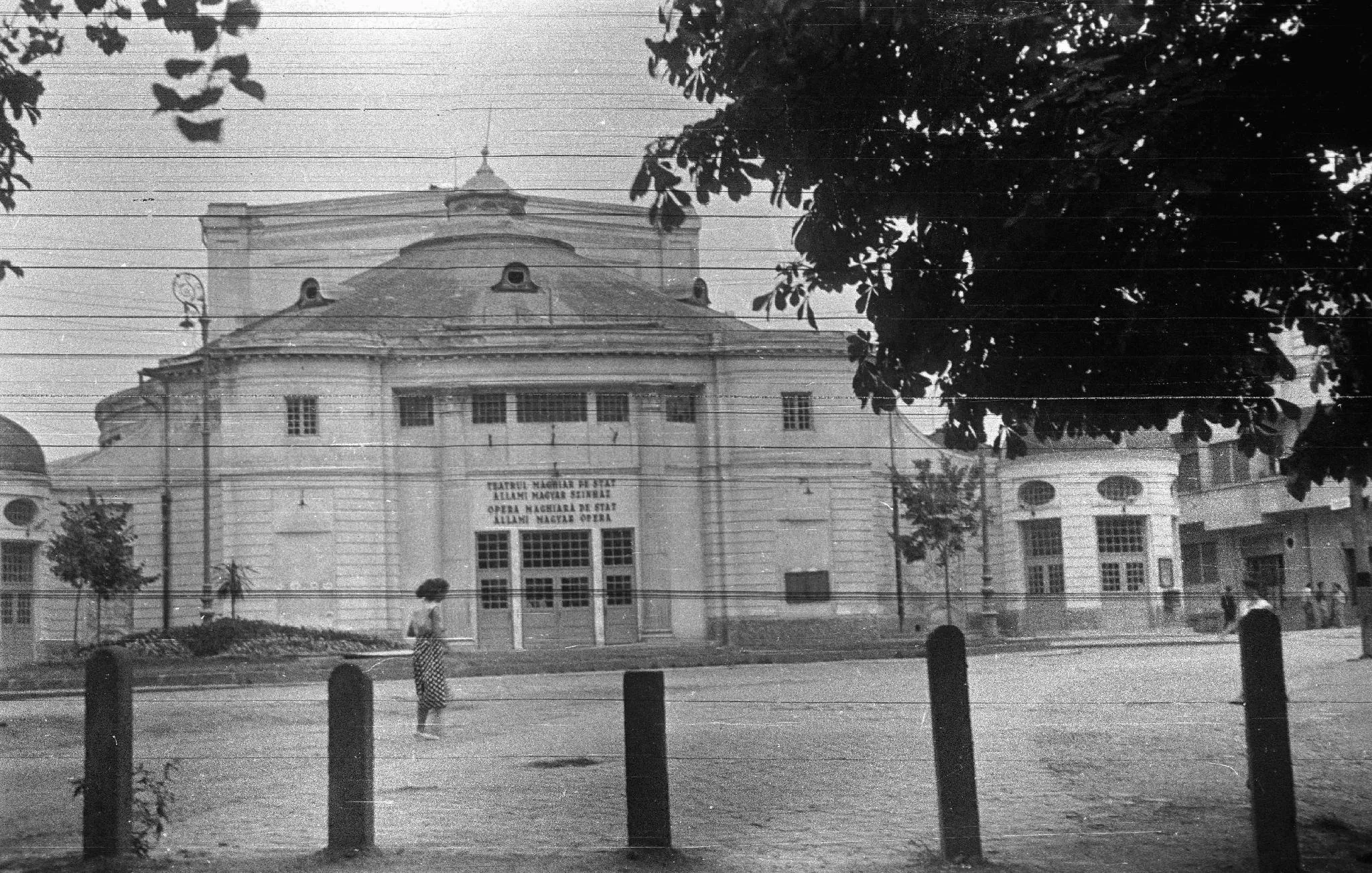 Au trecut 67 de ani, din momentul surprinderii acestei fotografii cu Teatrul Maghiar. Diferența dintre cele două versiuni ale clădirii este una majoră. Clădirea reprezentată anilor ‘50 avea, parcă, o imagine mai sumbră. Motivul principal pare a fi grilajul folosit la ferestrele și ușile principale ale clădirii.
