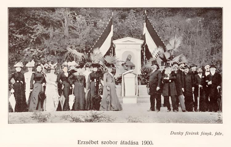 ”După asasinarea reginei Sissi, în 1898, s-a pornit o campanie naţională pentru ridicarea de statui dedicate reginei mult iubite. În paralel Asociaţia pentru Înfrumuseţarea Oraşului (Városszépítő Egylet) condus de Haller Károly făcea eforturi pentru extinderea parcului central (Sétatér) spre Cetăţuie şi amenajarea acesteia cu sprijinul asociaţiei doamnelor din oraş care colectau donaţii pentru finanţarea lucrărilor (conduse de Bölöny József-né care a plătit şi costurile statuii).