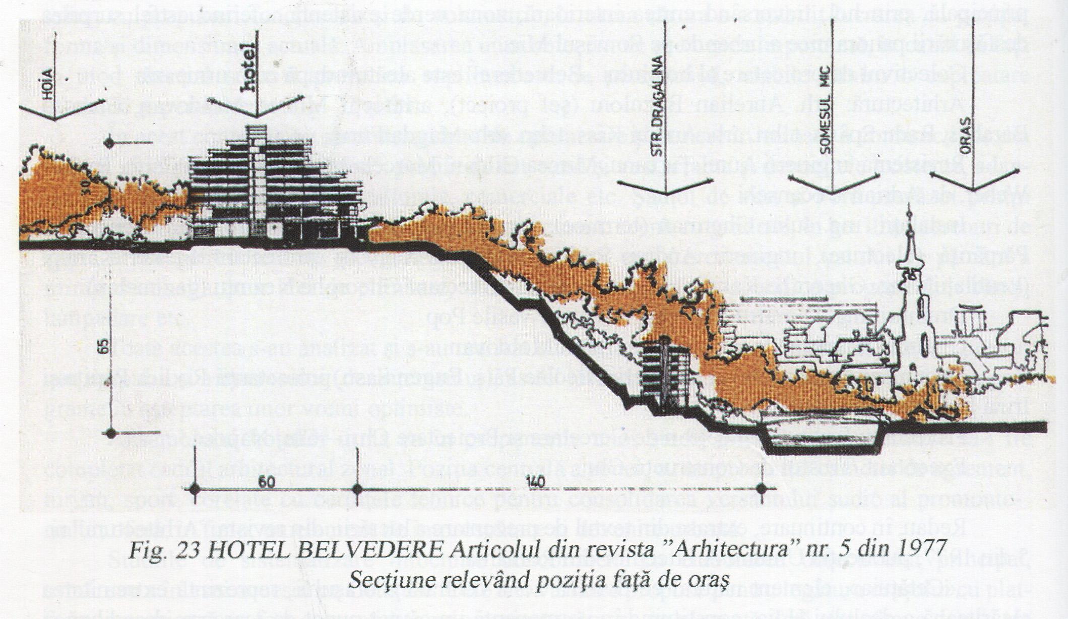 ”Telecabina care ar fi făcut legătura dintre zonele de jos, str. Gheorghe Barițiu, și hotel, peste Someșul Mic, anulată prin plasarea și realizarea celor două bănci, Banca Comercială și Banca Transilvania, realizare "momentan" imposibilă.
