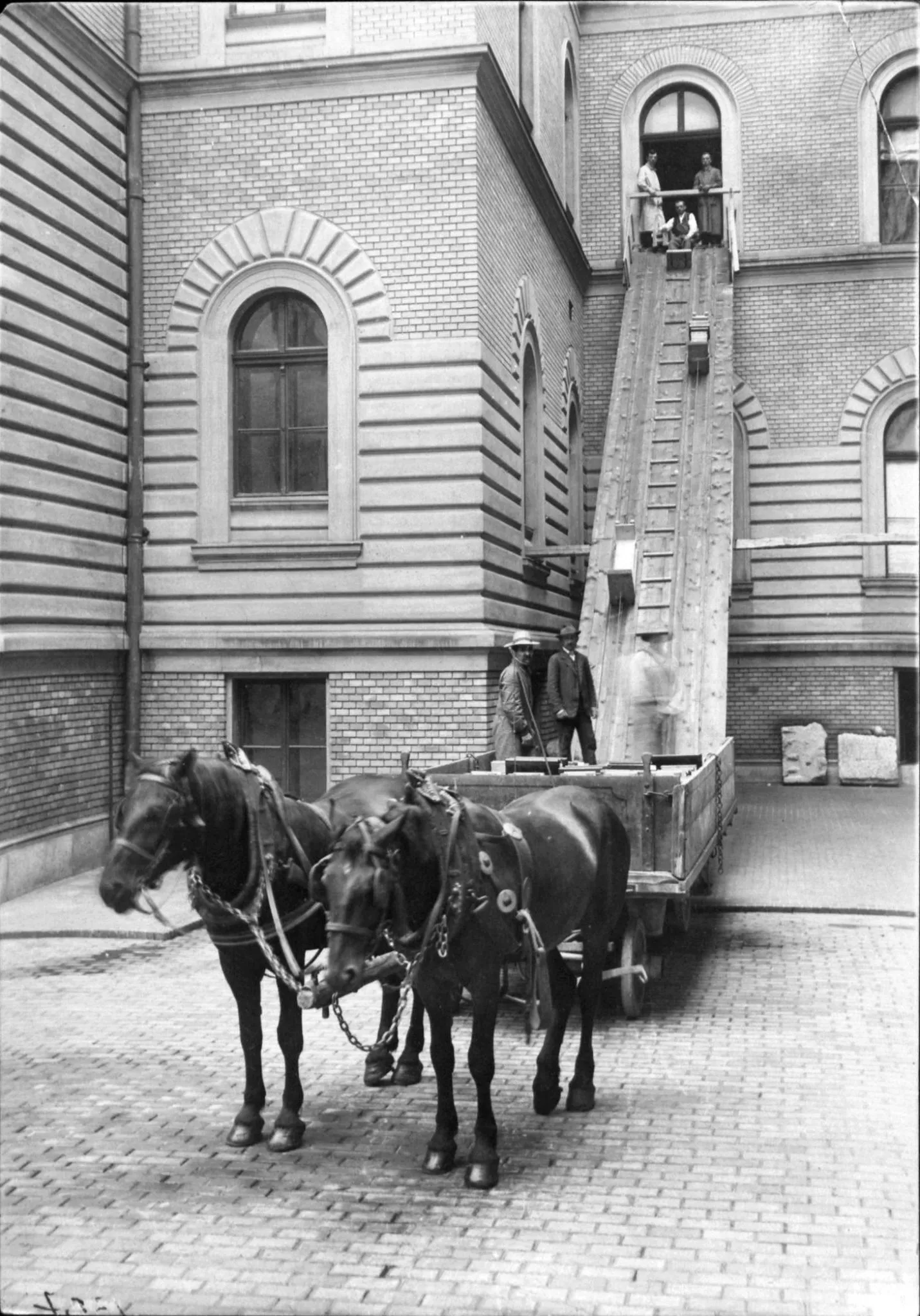 O fotografie inedită din 1908 ne arată modul în care au fost transferate colecțiile din clădirea Universității în sediul actual al Bibliotecii Centrale Universitare „Lucian Blaga” din Cluj-Napoca.
