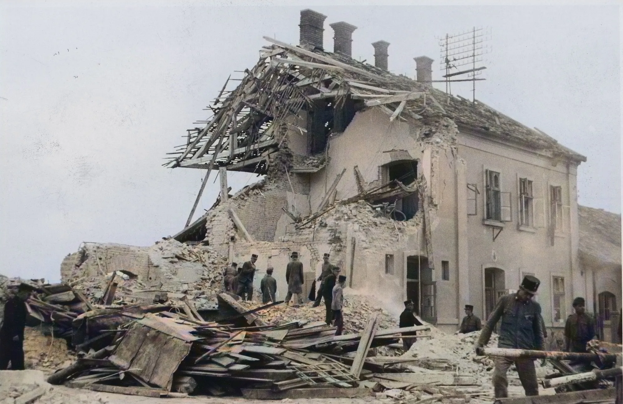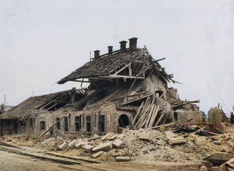 Imaginile surprinse după bombardament arată dezastrul lăsat de temutele avioane americani. Gara a fost distrusă, iar trenurile aruncate în aer.