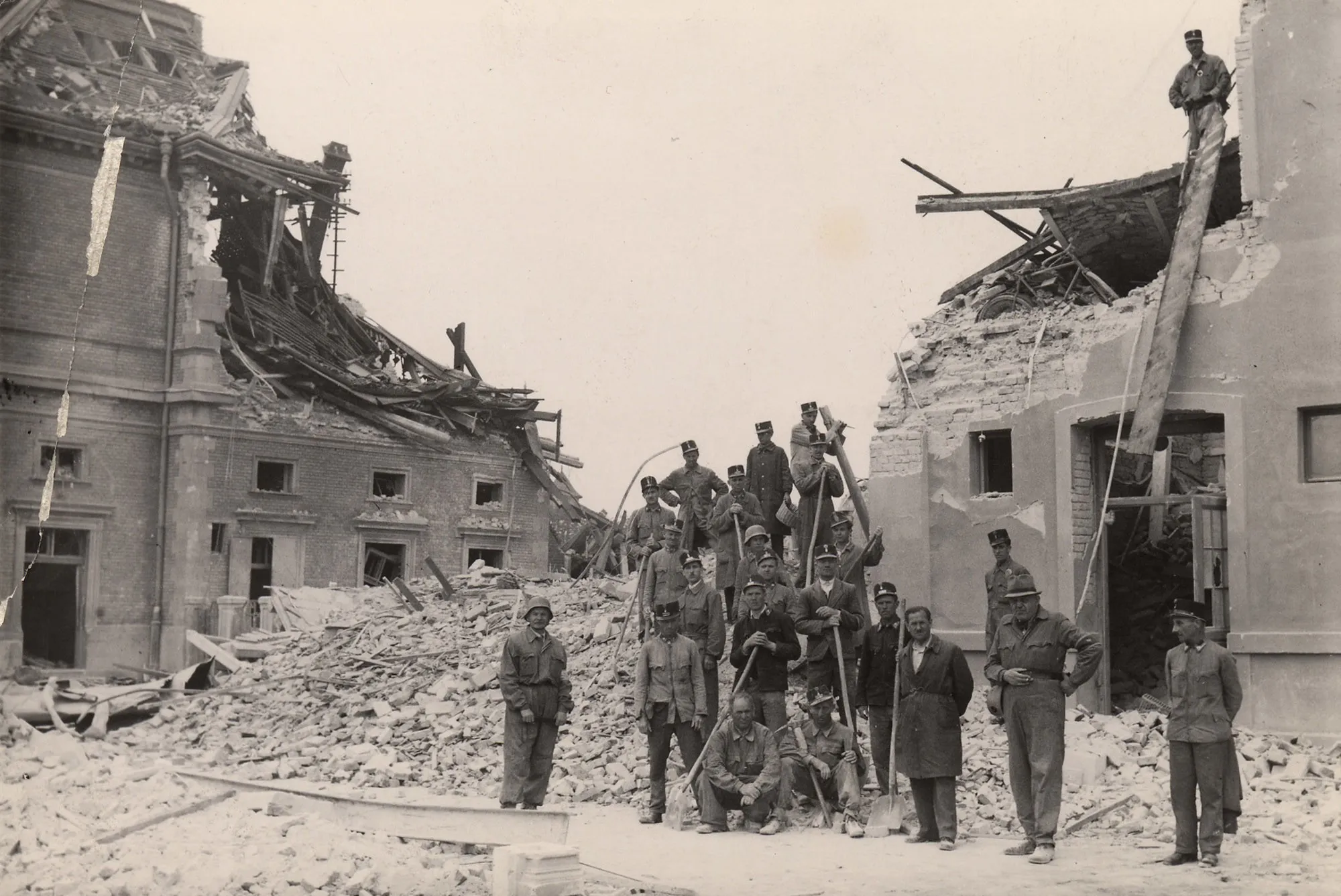 Foto: Militari după ce a fost bombardată Gara Cluj ( iunie 1944 )