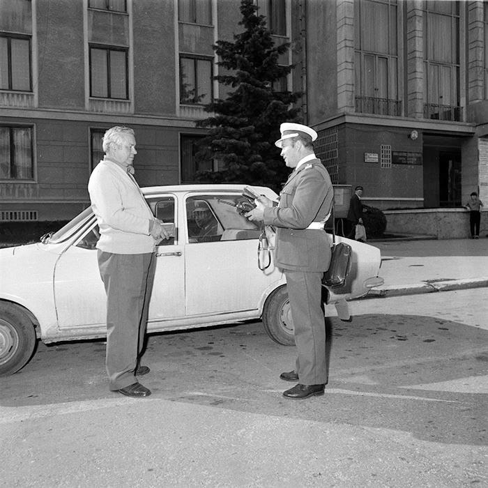 O fotografie din acei ani îl prezintă pe agentul Rusu, care a oprit un taximetrist și îi verifică actele. Se pare că ambii erau foarte cunoscuți atunci, mai ales că erau foarte puțini taximetriști.
