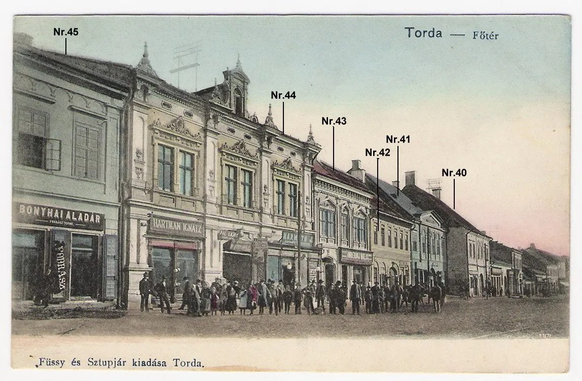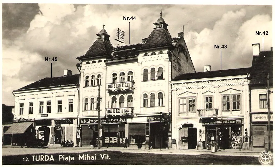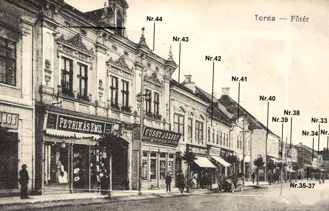 La numărul 44, în Piața Republicii funcționa tipografia Füssy, destul de cunoscută în acele vremuri, când Turda era un oraș important. În anul 1917, o explozie de gaz a distrus imobilul de la numărul 44, geamurile au fost sparte și tot ce era în interior afectat grav.