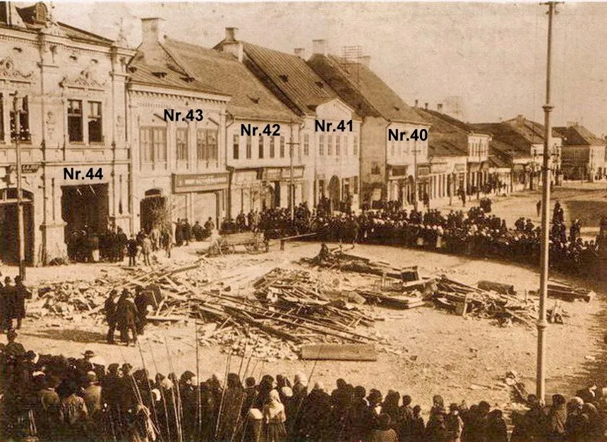 O imagine păstrată de atunci prezintă foarte bine dezastrul lăsat în urmă, în Piață fiind adunat o mare masă de oameni. Tipografia Fussy Joszef era importantă în acele vremuri.