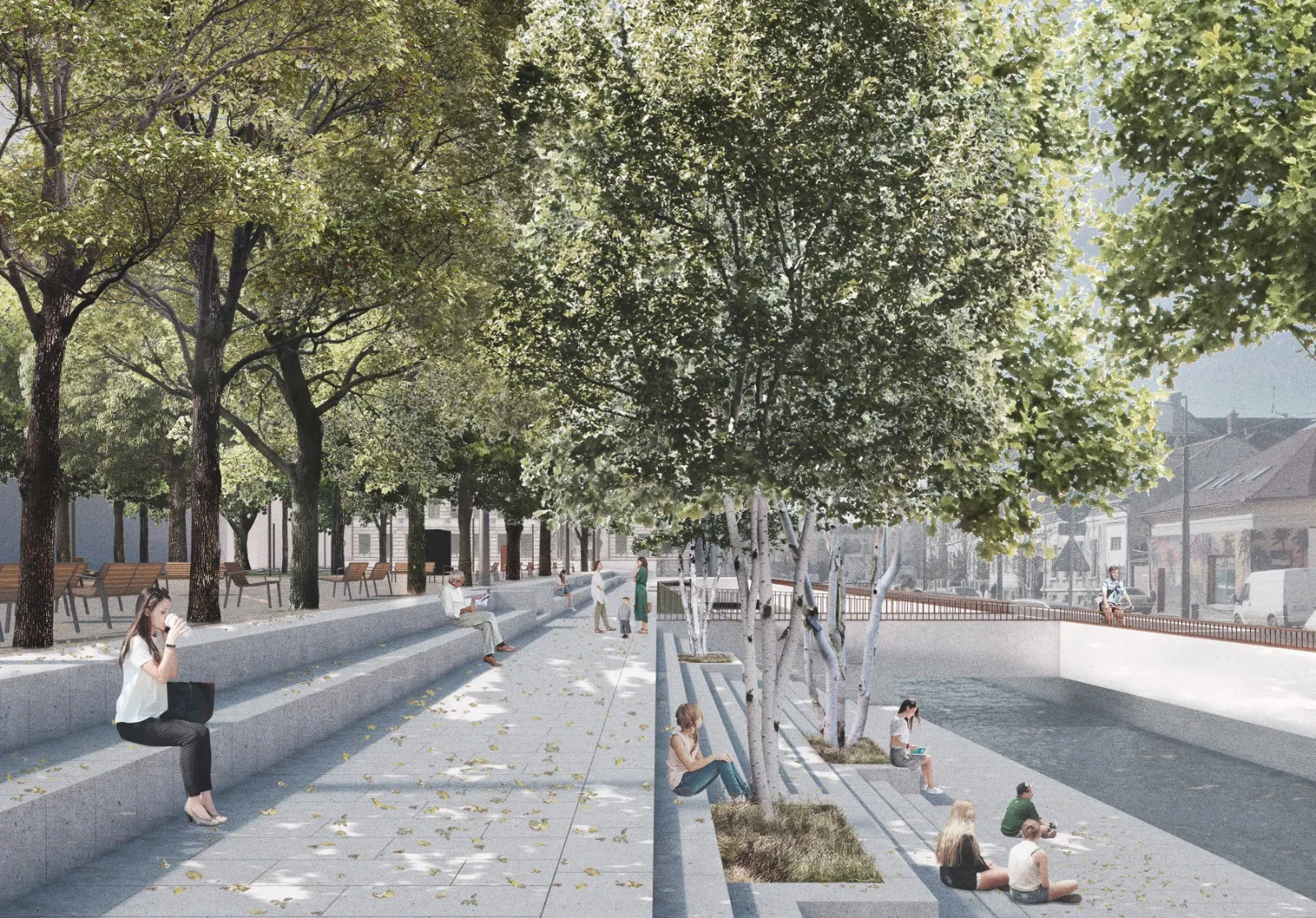 Totodată s-a refăcut pasarela pietonală în dreptul Palatului Telefoanelor, pe locul fostului “Pod al servitoarelor”, cunoscut în epocă pentru frecventarea acestuia de către femeile din localitățile limitrofe Clujului, ce-și ofereau serviciile de menaj pentru locuințele din oraș. După definitivarea urbanistică a scuarului, funcțiunea acestuia a fost de repaus temporar, precum și de loisir, dotarea acestuia numărând diferite echipamente de joacă pentru copii, alături de mobilier urban pentru odihnă.