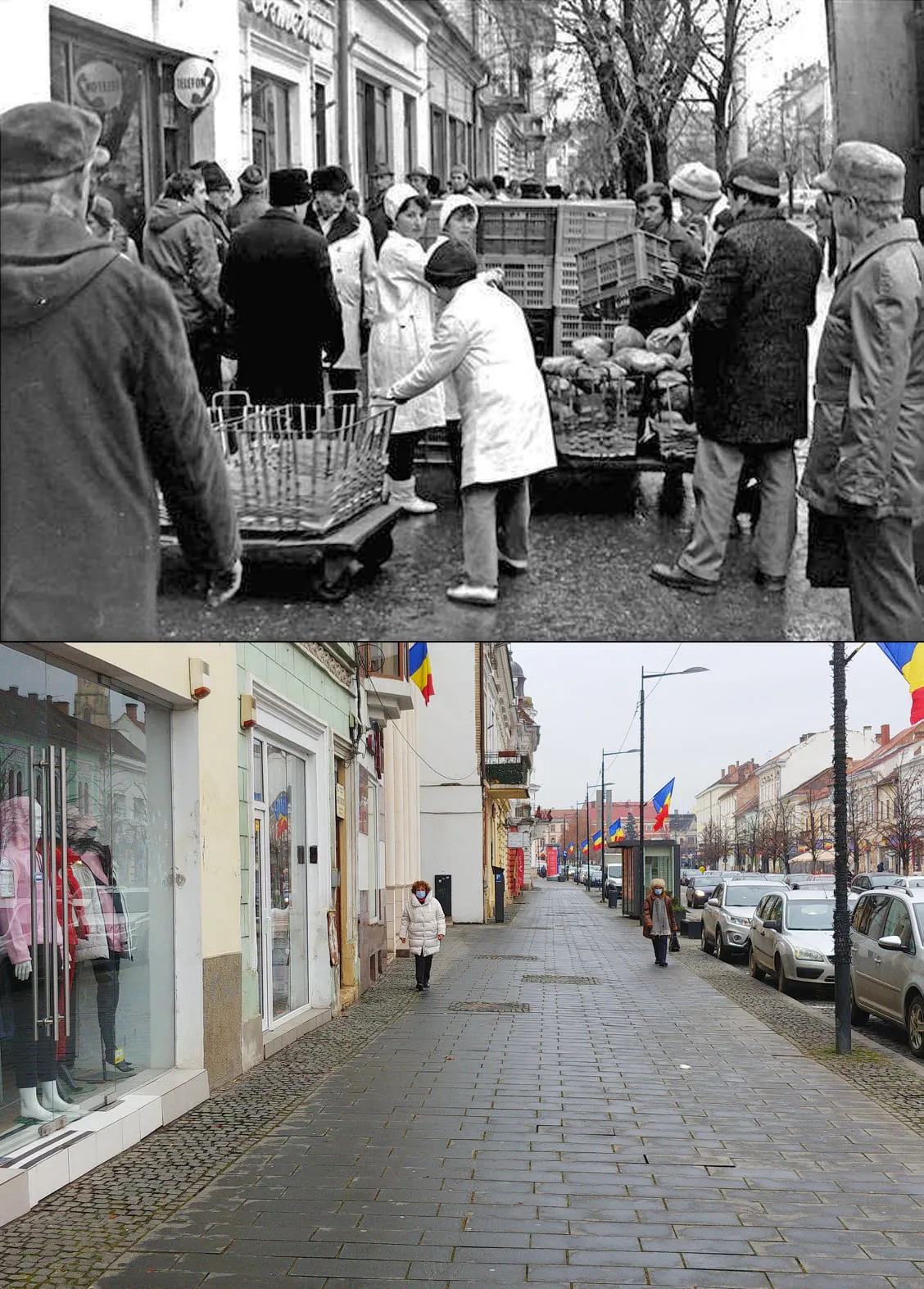 ”Poza de sus daca era fotografiată color se vedea frumos un oraș locuibil cu multă populație și cred că am fost și destui dintre noi fericiți. In poza de jos se vede un oraș Fantomă pustiu și gol de asemenea așa sunt și muti oameni goi și pustiiți pe dinăuntrul lor gen ( Roboti ). Acum este libertate dar totuși suntem închiși atunci era lipsa libertăți de sine ,, dar .. omul era om și mult mai bun . Părerea mea”, a comentat o clujeancă.