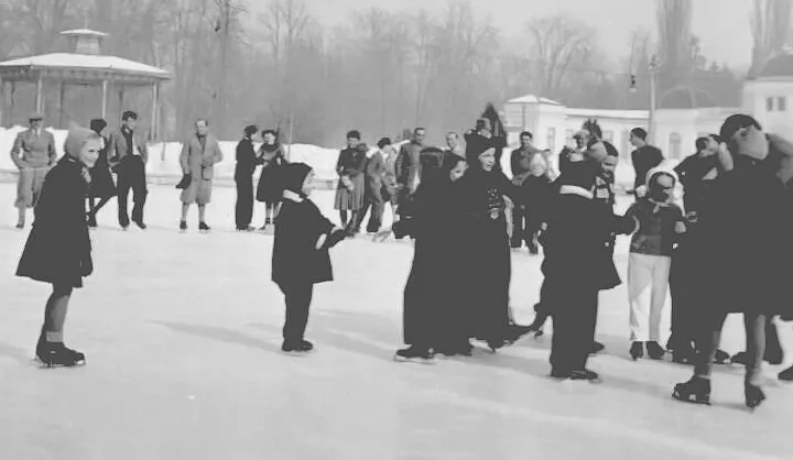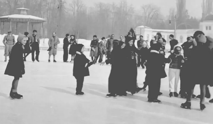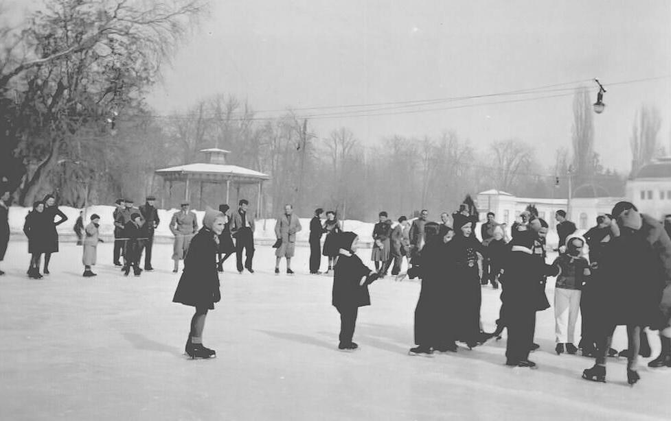 Potrivit acestora, imaginea datează încă din anii anii '40. Câteva zeci de persoane, marea majoritate copilași, însoțiți de părinți, se pot observa având parte de o atmosferă plăcută pe lacul înghețat din parc.