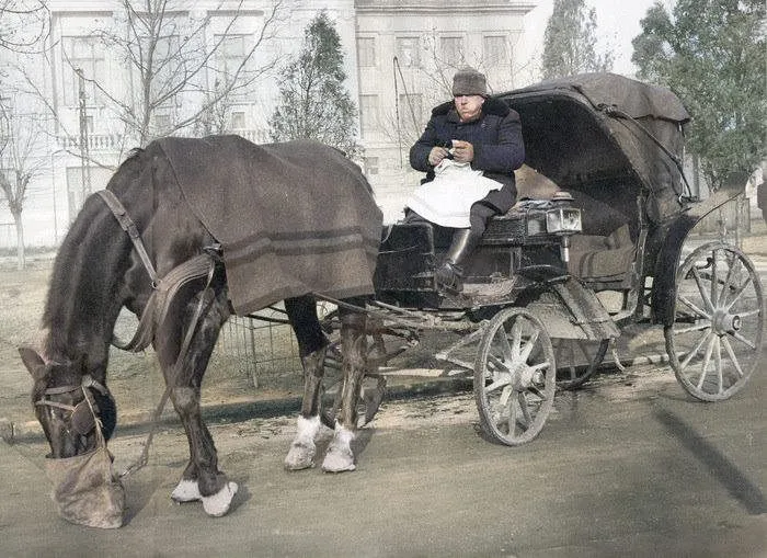 Pauză de masă a unui birjar din Clujul de demult - FOTO