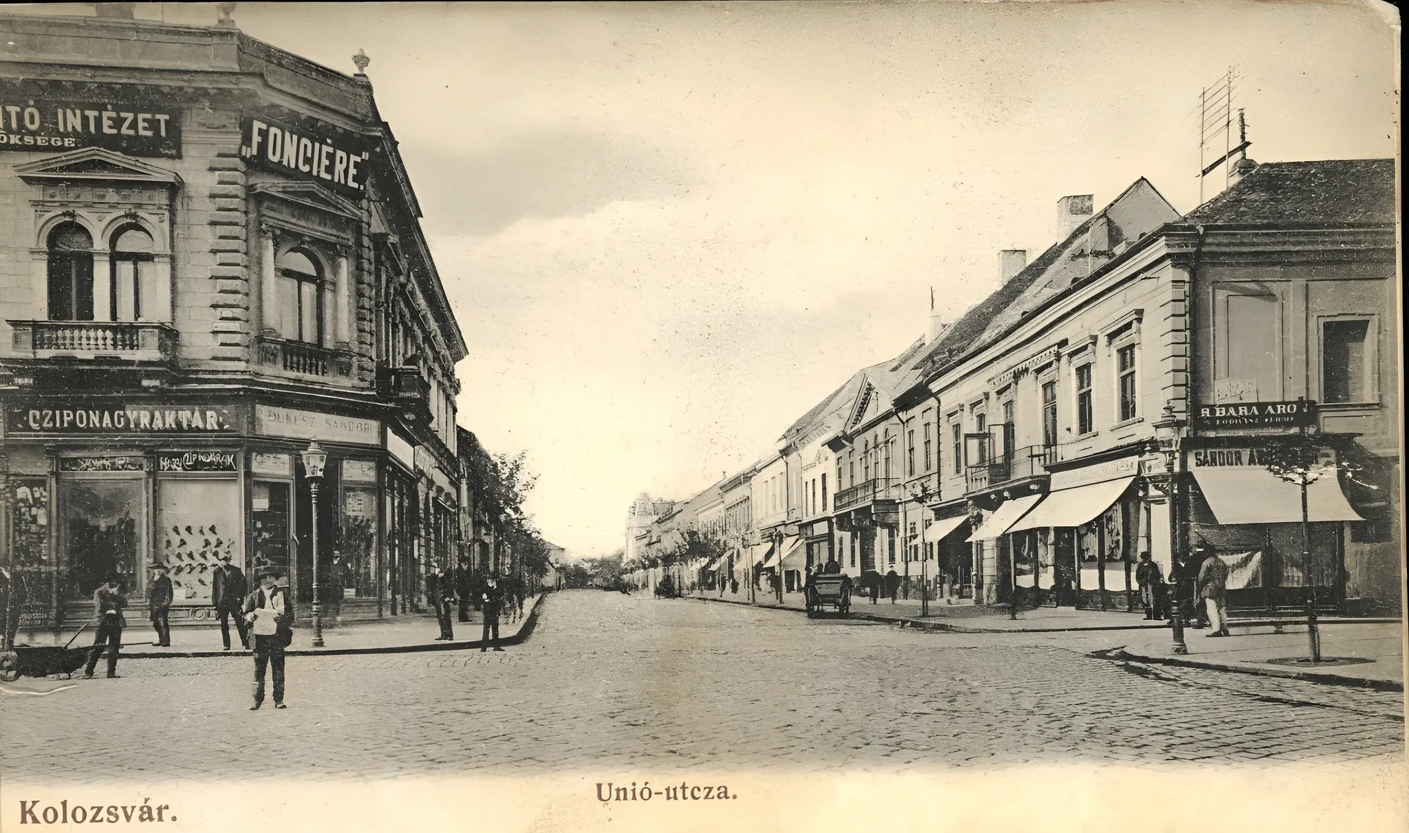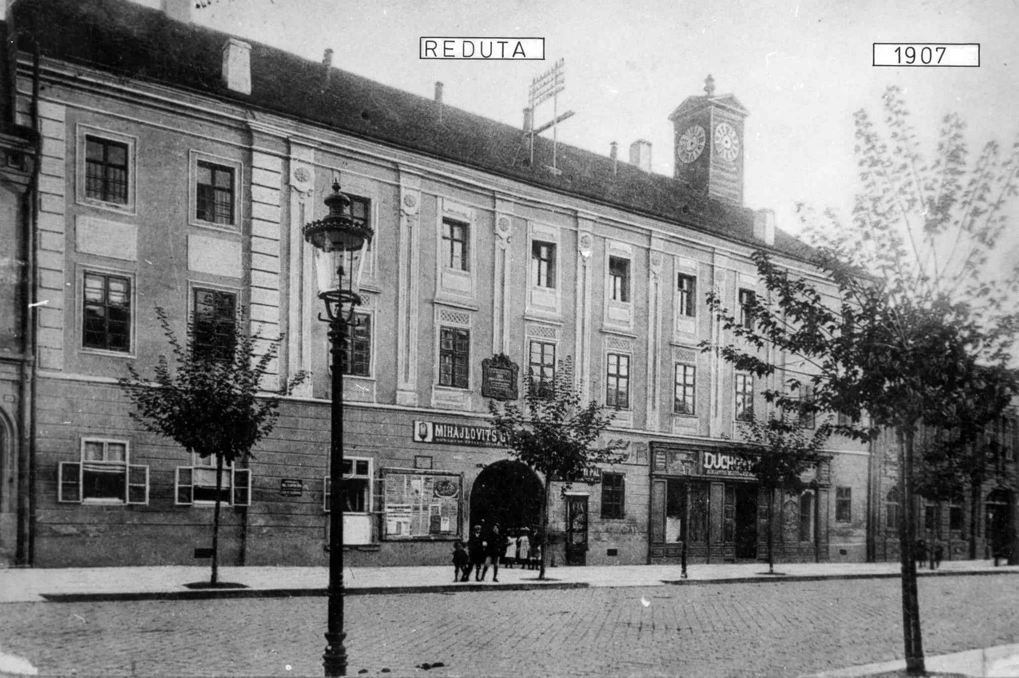 Reduta (de la cuvantul francez La Redoute, sala de dans) avea cea mai mare sala cu destinatie nereligioasa din oraș, putând găzdui peste 1000 oameni. Aici au concertat Liszt, Brahms, Enescu; aici a avut loc procesul memorandistilor; aici a fost declarata Uniunea dintre Ardeal si Ungaria ("Unió" de unde si numele vechi al străzii). A gazduit ședințe ale parlamentului (Dietei) transilvanene si aici a avut loc prima proiecție de film din Cluj in 1897. Placa comemorativă originala de pe fațada clădirii a fost proiectată de János Fadrusz, sculptorul statuii regelui Matia (indepartata in perioada interbelica)”, a mai explicat András Vajda.