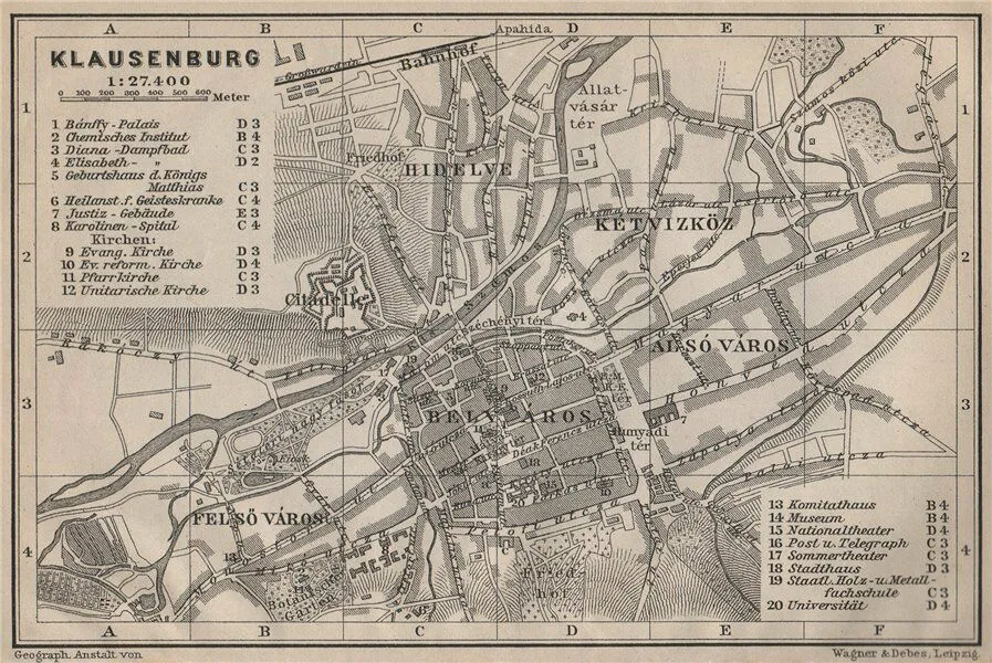 Planul orașului Cluj, Klausenburg, Kolozsvar, în 1905 - FOTO