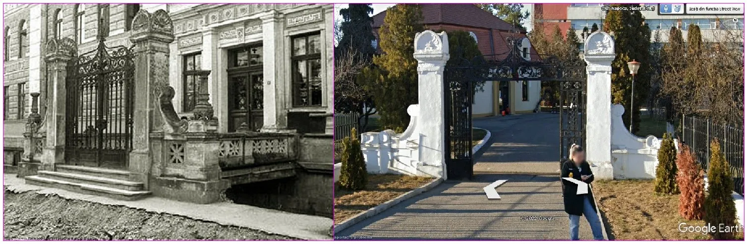 ”Înainte de anii 90, Canalul Morii de pe strada G. Barițiu era descoperit, iar intrarea în clădirea Facultății de Construcții, se făcea prin acest somptuos portal. Fotografia este realizată de Rohonyi D. Iván, în 1986 (sursa: © Szabadság.ro), cu ocazia ultimelor clipe de existență ale acestei frumoase lucrări. Tot ansamblul, clădirea, podul, portalul, au fost proiectate de arhitectul șef al orașului, Pákei Lajos (1853-1921). Dacă acum clădirea este Universitate Tehnică, inițial a fost muzeu. S-a numit Muzeul Industriei "Franz Joseph I" și a fost construit între anii 1901-1903. Muzeul s-a desființat în anul 1926, iar de atunci clădirea este destinată învățământului. Prin lucrările de acoperire a Canalului Morii, podul s-a demolat, iar portalul s-a mutat la intrarea de la Universitatea Tehnică din cartierul Zorilor. Din păcate portalul si-a pierdut măreția. Este ciuntit, rozetele laterale s-au tencuit, amforele laterale s-au demolat, s-a văruit în alb, aidoma protecției copacilor la furnici, treci pe lângă el fără să-l observi. Numai când superba poartă din fier forjat este închisă, abia atunci îți atrage atenția frumusețea acestei lucrări”, precizează un contributor al grupului Amintiri din Vechiul Cluj.