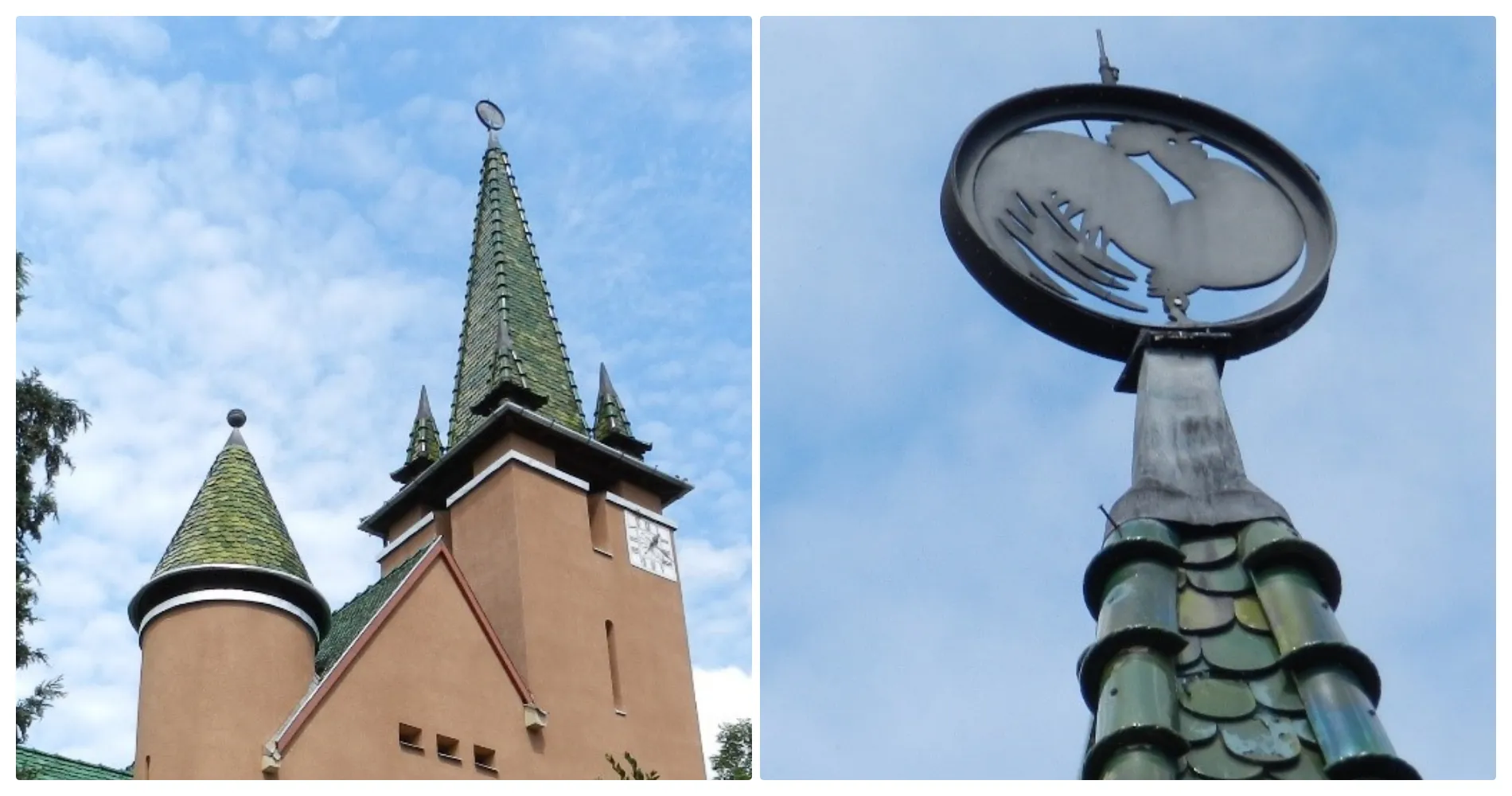 Povestea țiglelor verzi de pe Biserica cu Cocoș (Kakasos templom) din Cluj-Napoca. Cocoșul veghează împotriva diavolului - FOTO