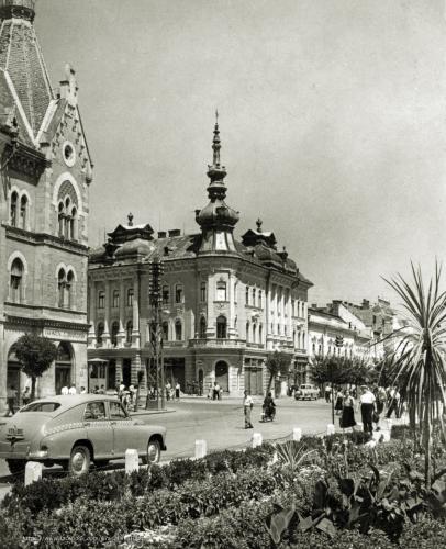 ”Perspectivă a Pieței Mihai Viteazu, văzută de pe strada Barițiu (zona ”Casa de modă"), intersecția cu strada Horea și strada Doja, de pe partea cu Palatul Telefoanelor - actualul parc Ion Luca Caragiale. Începutul anilor '60”, scrie un utilizator al grupului Amintiri din Vechiul Cluj.