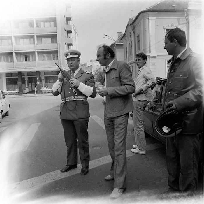 În fotografie îl putem recunoaște pe cunosctutul agent Rusu, un personaj recunoscut din Piața Păcii. În partea din stânga a pozei, pe fundal, se poate terasa fostei cafenele, unde şedeau la poveşti scriitori, universitari, artişti plastici, ziarişti, arabi, studenţi, taximetrişti, de unde reputaţia îndreptăţită a cafenelei ca spaţiu al boemei locale.