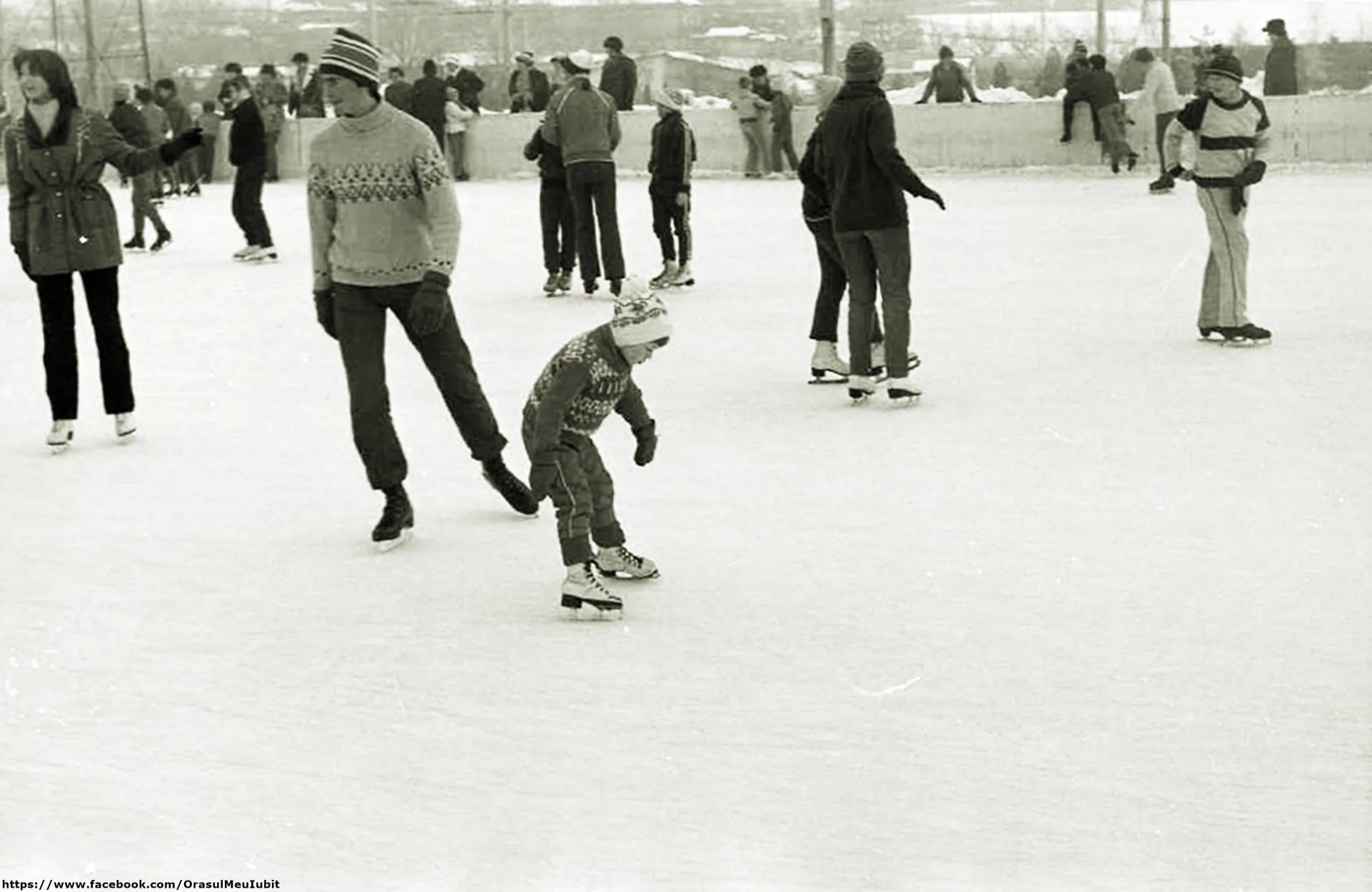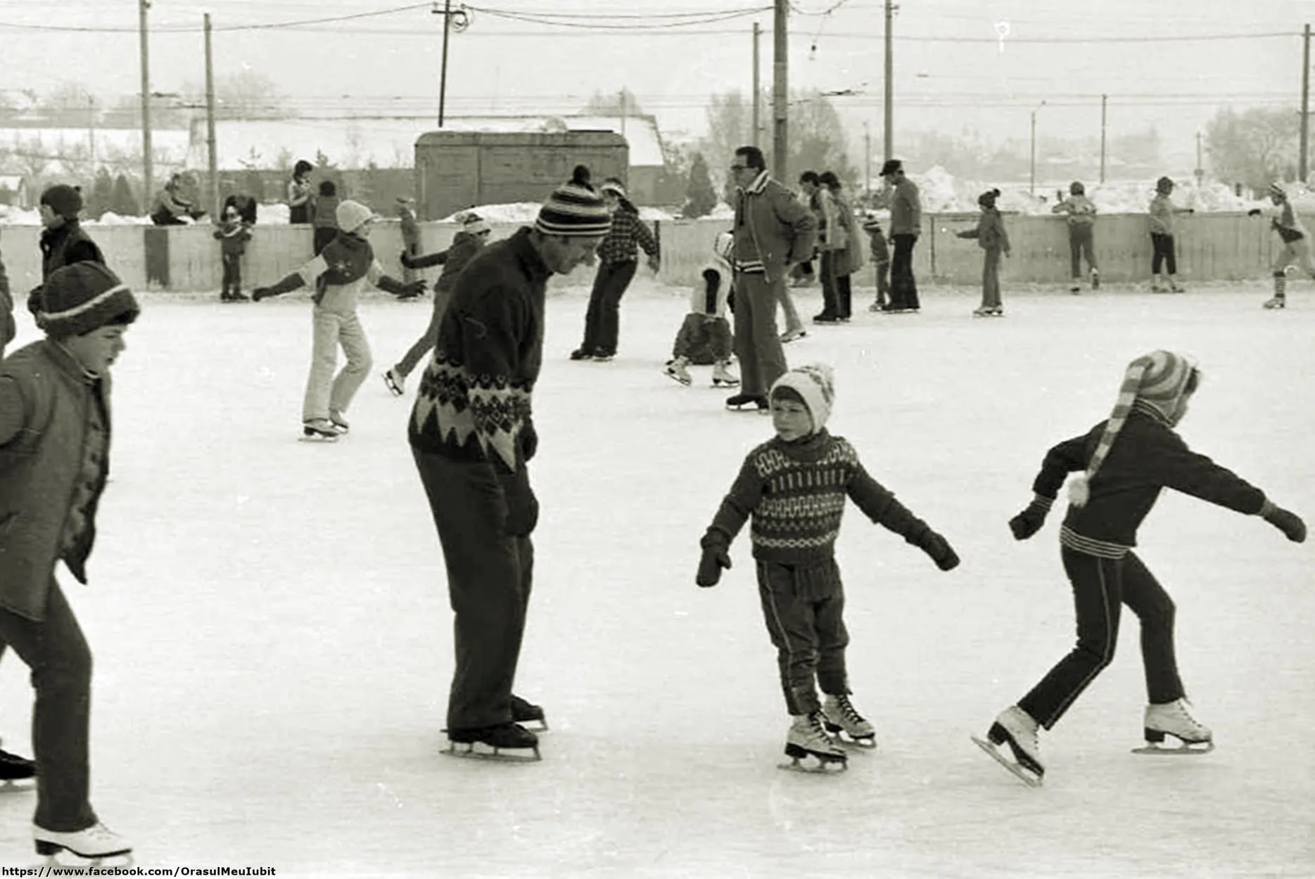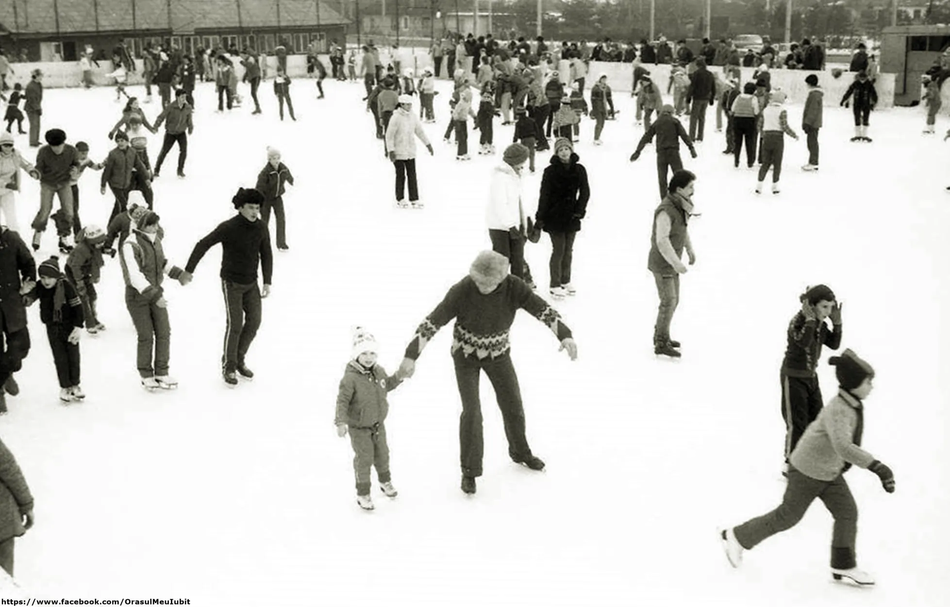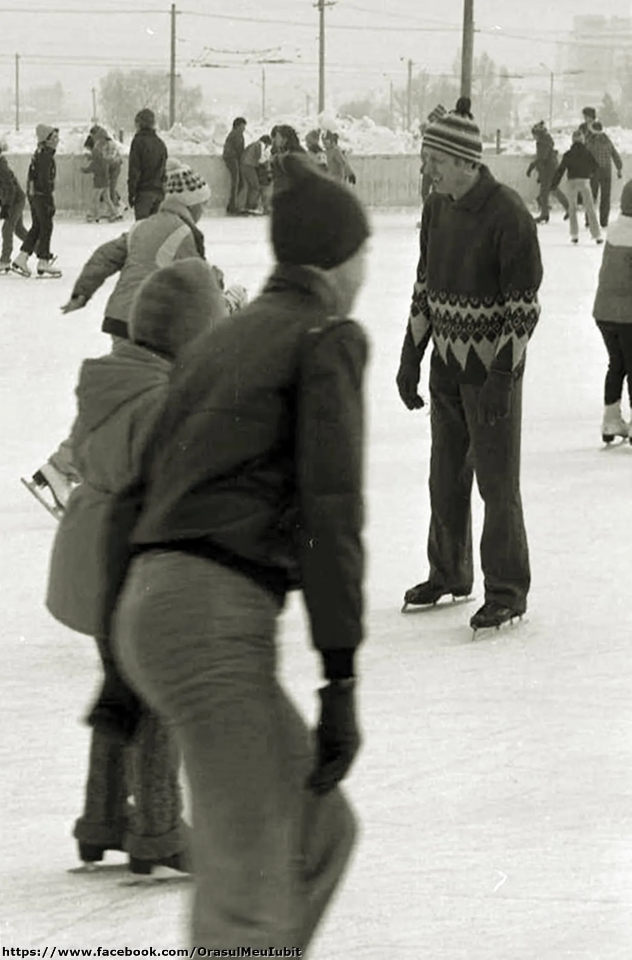 Imaginile postate acum prezintă clujeni din 1989, care se distrau pe gheață, mult mai dornici de a se bucura decât sunt cei din ziua de azi.