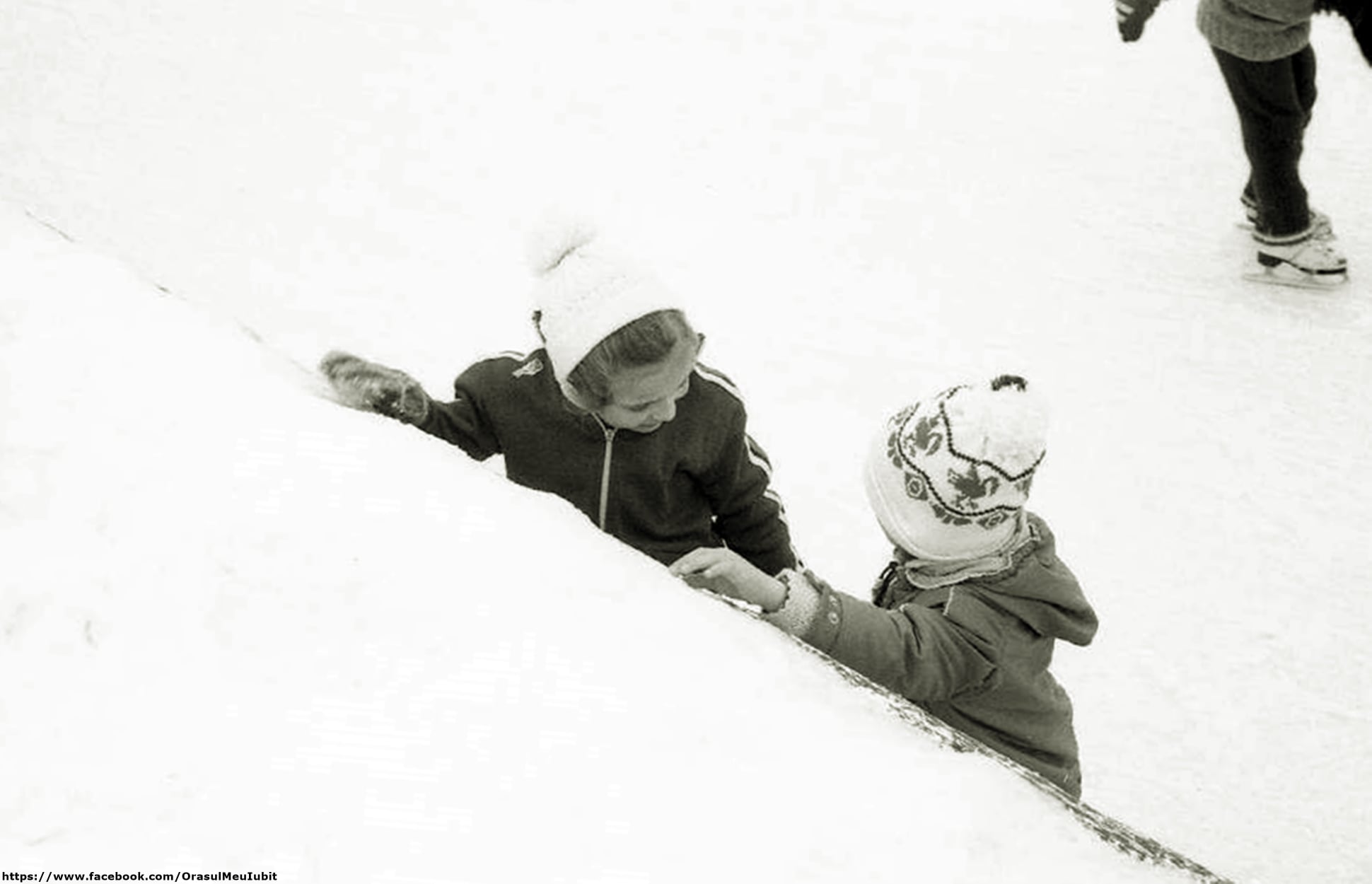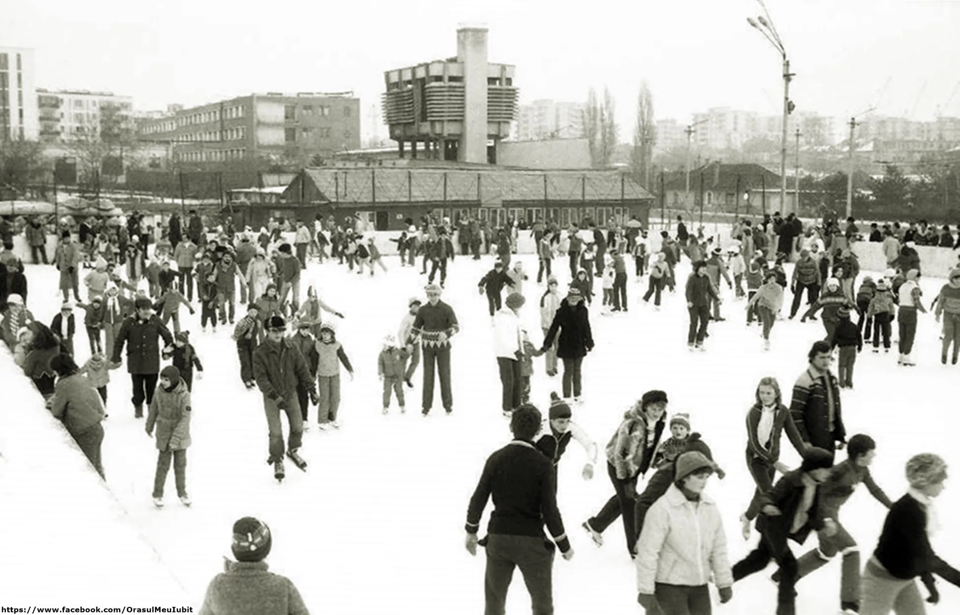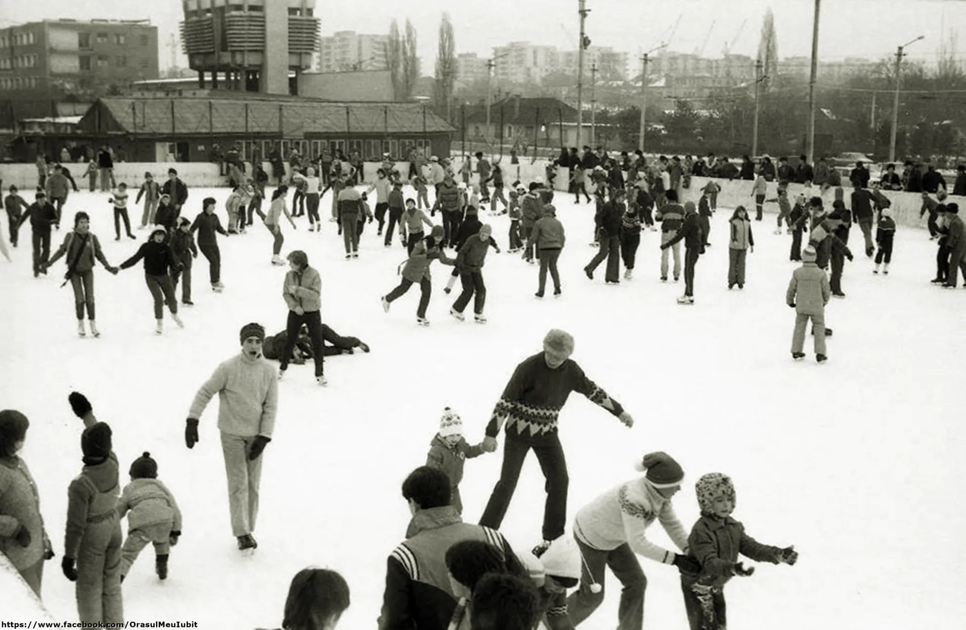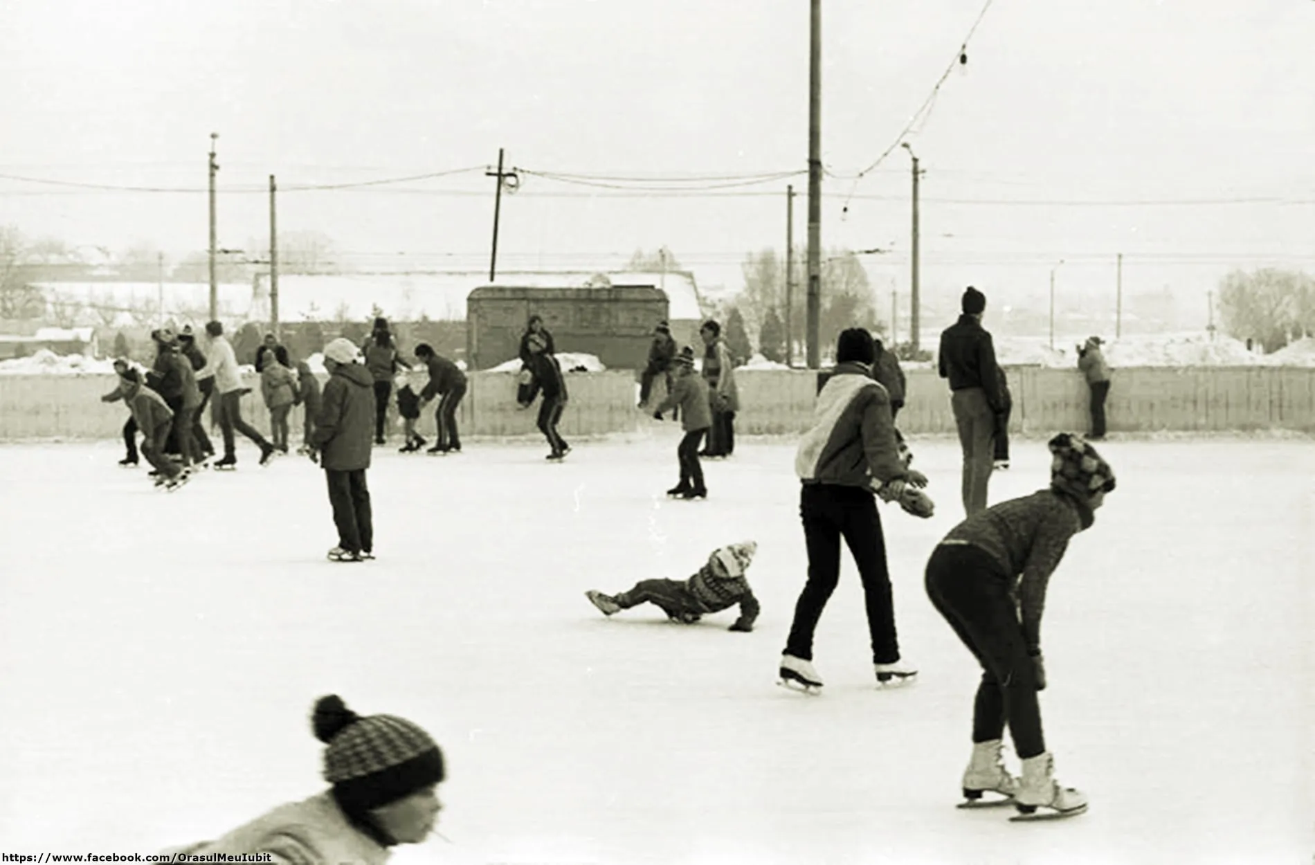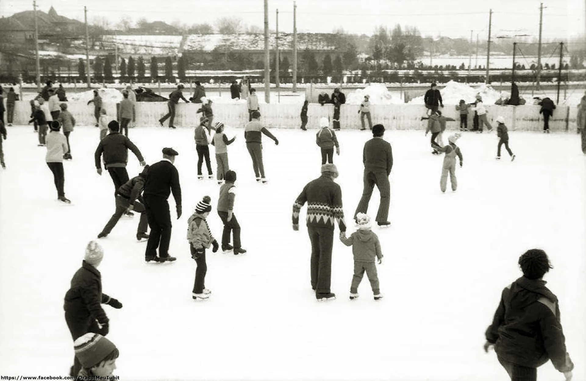 Imaginile postate acum prezintă clujeni din 1989, care se distrau pe gheață, mult mai dornici de a se bucura decât sunt cei din ziua de azi.