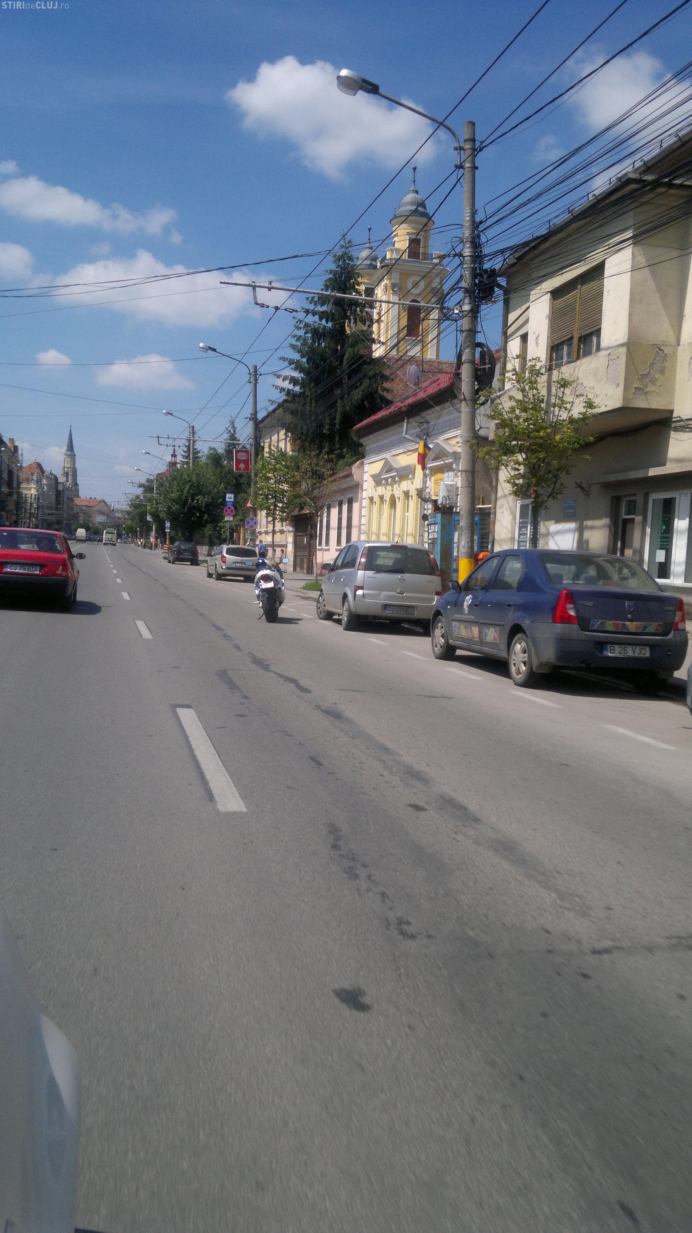 Un cititor Știri de Cluj ne-a trimis pe adresa redacției o fotografie surprinsă pe Bulevardul 21 Decembrie 1989, unde un motociclist a ”parcat” în mijlocul benzii întâi de circulație.