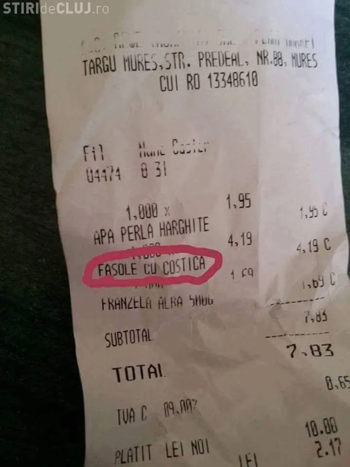 Viața bate filmul! A luat fasole cu costiță, dar a primit acest bon - FOTO