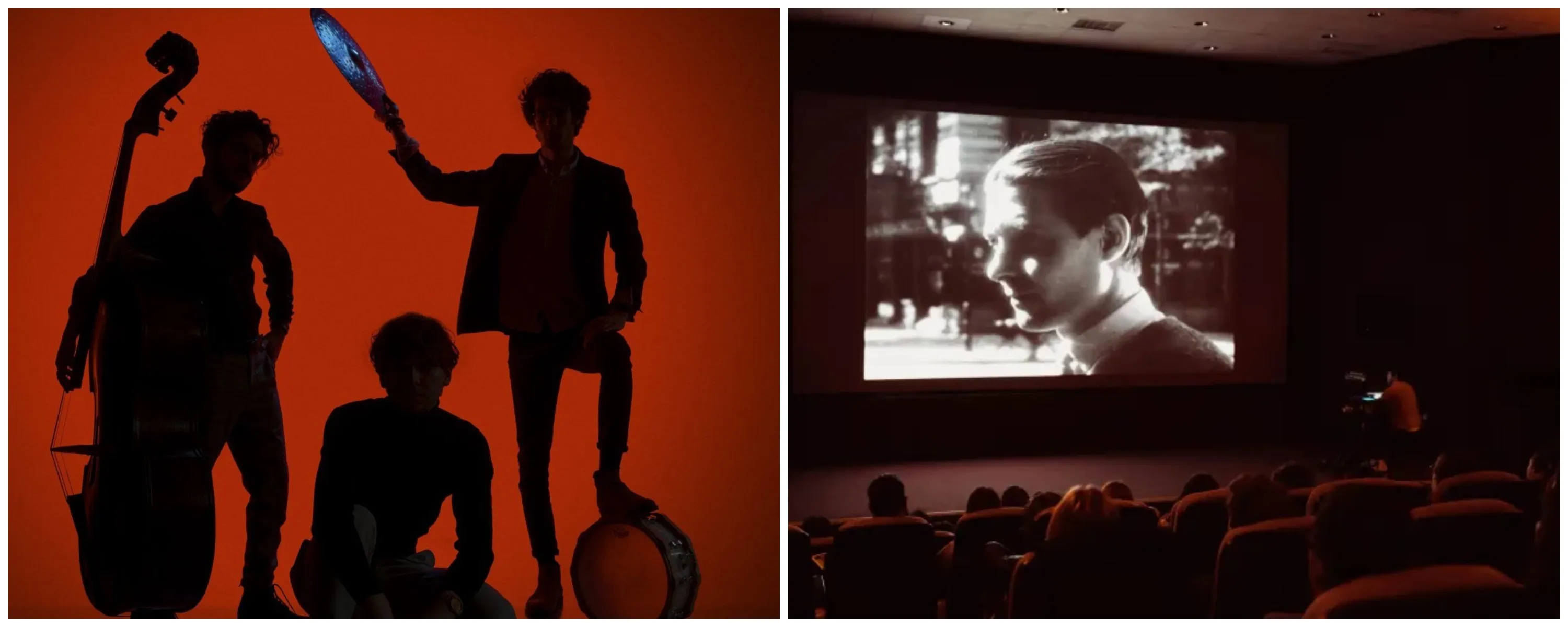 Atmosfera cinematografică va fi reinventată de trio-ul Amphitrio, Andrei Petrache (pian), Mike Alex (bas) și Philip Goron (percuție), cunoscuți pentru felul în care combină improvizația, jazzul contemporan, influențele nordice și fragmentele de electronic. Grupul, distins în 2025 cu Premiul UCIMR pentru Ansamblu de Jazz și Premiul Radio România Cultural, transformă fiecare cineconcert într-o întâlnire directă între film și sunet.