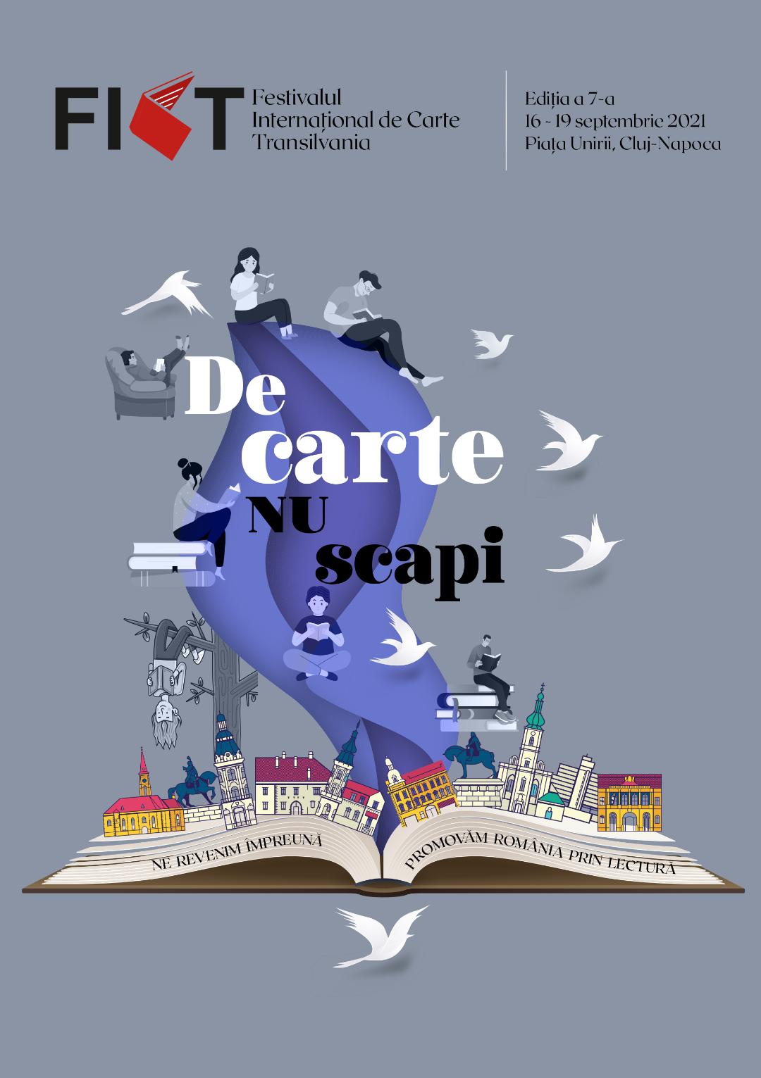 Festivalul Internațional de Carte Transilvania (FICT) revine în Piața Unirii din Cluj-Napoca în perioada 16-19 septembrie 2021 cu mesajul „Ne revenim împreună!”.