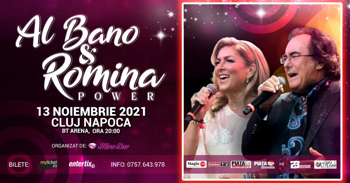 Cel mai iubit cuplu italian, cunoscut la nivel internațional, Al Bano și Romina Power, vine la Cluj-Napoca pentru un concert live de senzație, în 13 noiembrie, în cadrul turneului „Live Tour 2021”, care a fost întrerupt în 2020, din cauza pandemiei de COVID-19.