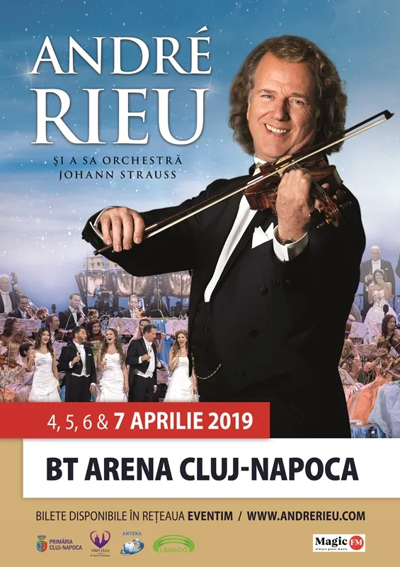 De pe 4 și până pe 7 aprilie, sărbătoarea bucuriei și a muzicii interpretate de celebrul violonist André Rieu și de muzicienii Johann Strauss Orchesta, va uni peste 25.000 de oameni și va răsuna în inima Transilvaniei.