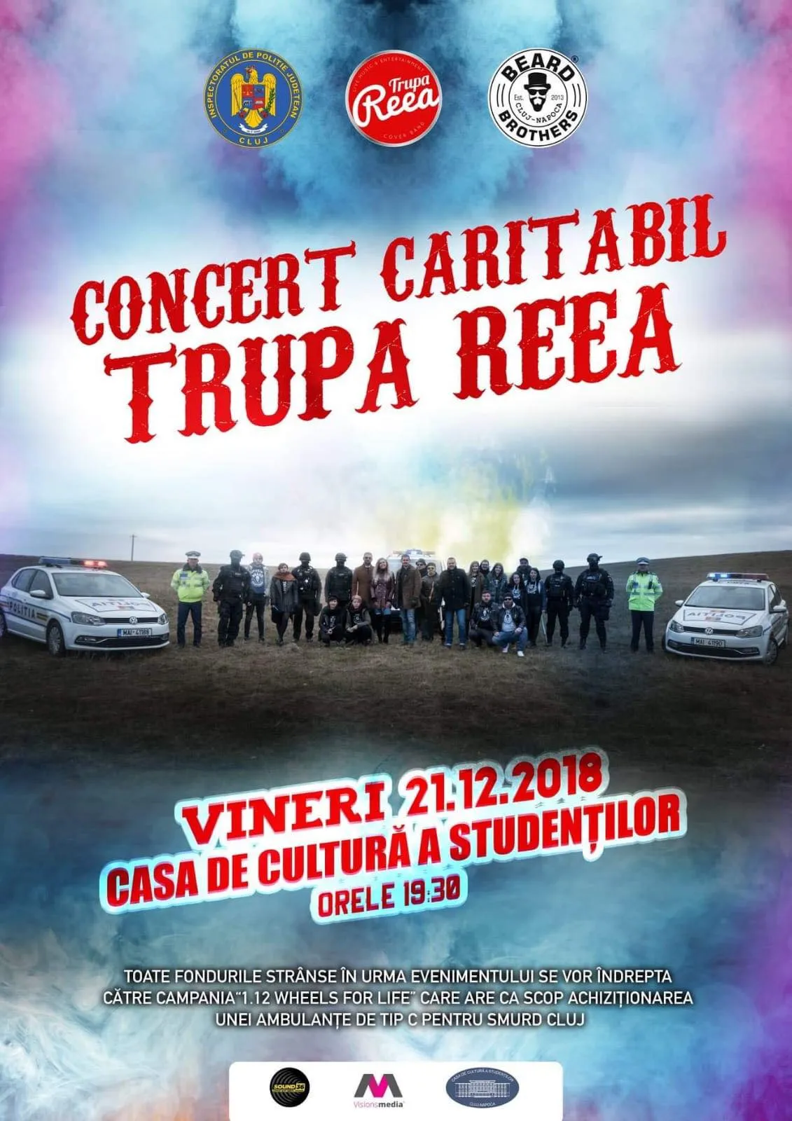 Inspectoratul de Poliție Județean Cluj, împreună cu Trupa Reea și Beard Brothers, organizează un concert caritabil la data de 21 decembrie a.c., la Casa de Cultură a Studenților, din Cluj-Napoca.