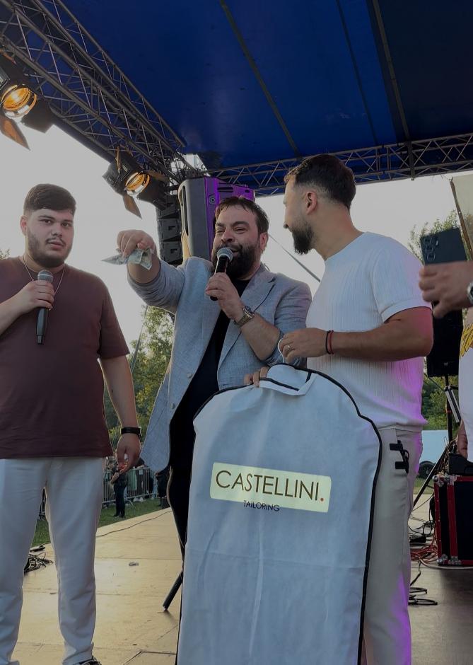 Nu a venit doar să asculte muzică, ci a adus un „dar” pentru fanii brandului „CASTELLINI tailoring” (aproape 83.000 de urmăritori pe TikTok), dar și pentru Adi Minune. Așa că, în mijlocul concertului, Castellini a făcut o dedicație de 1000 de lei, pentru toți urmăritorii săi online: „De la Castellini pentru toți urmăritorii lor, Ten Million. Și pentru Adrian Minune și formația. Mulțumim frumos”, a anunțat Adrian Minune.