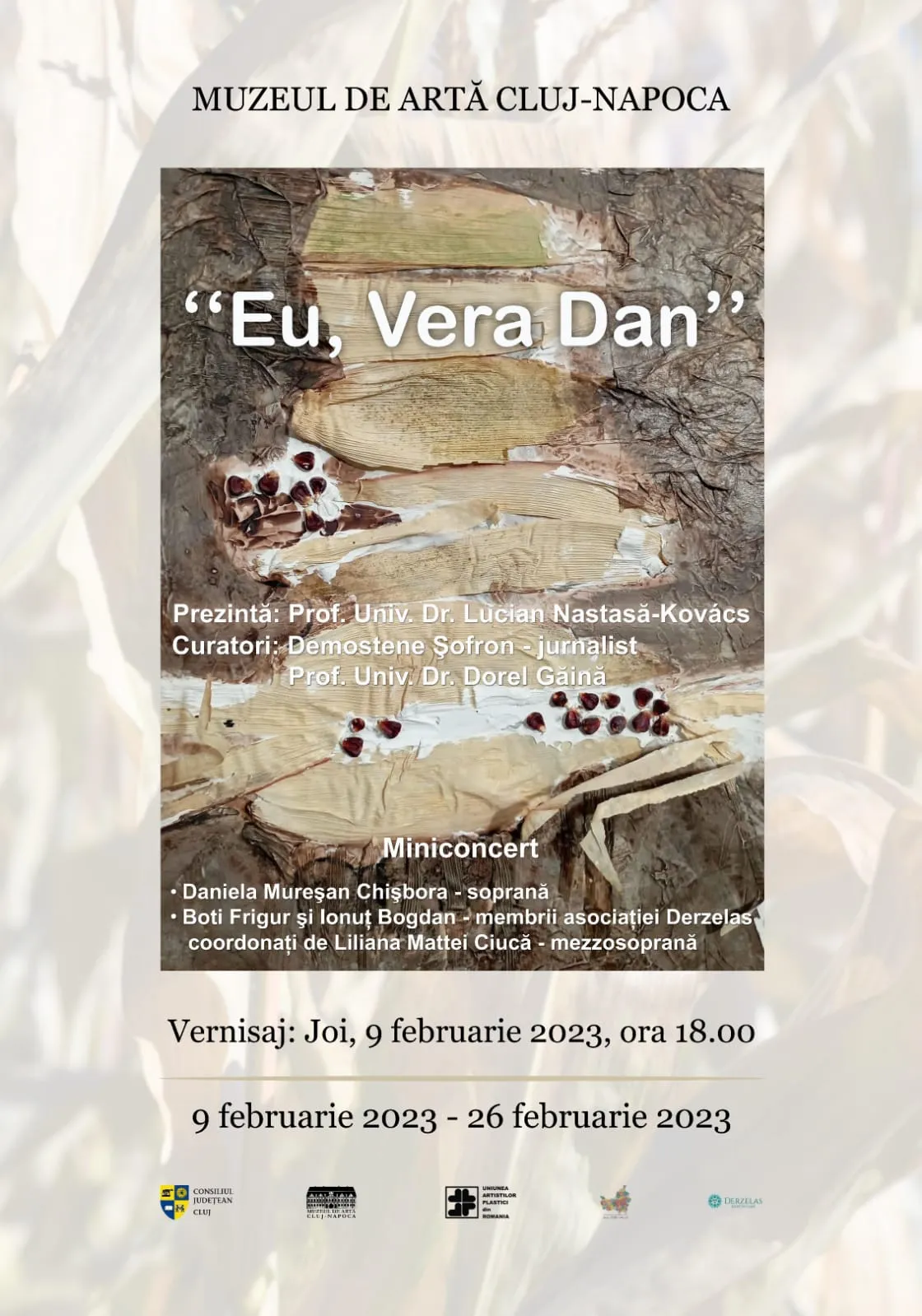 Pictorița clujeană Vera Dan va expune din 9 februarie, la Muzeul de Artă din Cluj, o serie impresionantă de tablouri realizate în ulei pe pănușă, pe baza unei tehnici personale.