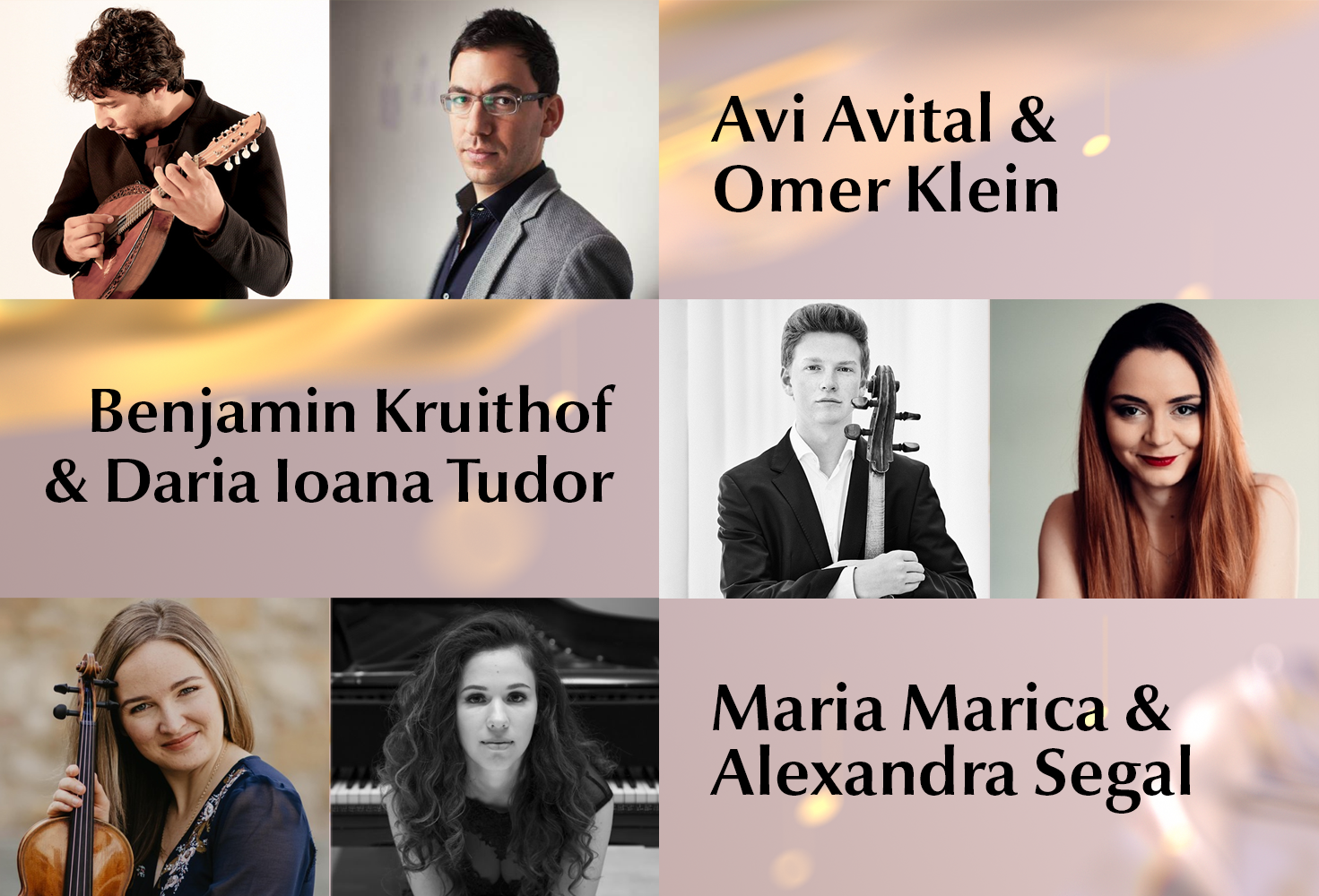 De asemenea, Maria Marica și Alexandra Segal, respectiv Benjamin Kruithof și Daria Ioana Tudor – câștigători sau participanți ai Concursului Internaţional George Enescu în 2022, vor impresiona publicul cu o selecție vastă de lucrări muzicale, incluzând compoziții celebre de Beethoven, Bach, Brahms, Schumann sau Schubert.