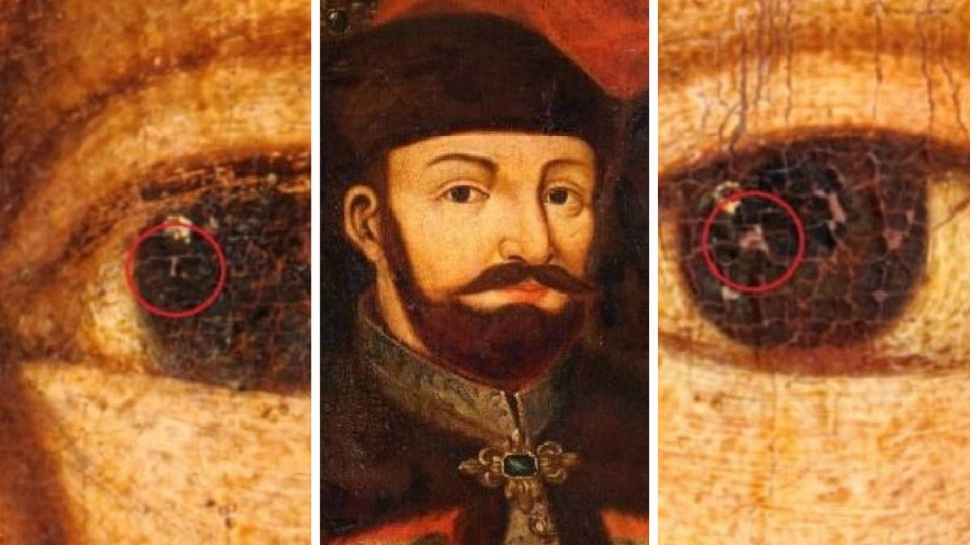 Literele A și I găsite în ochii portretului principelui Gabriel Bathory