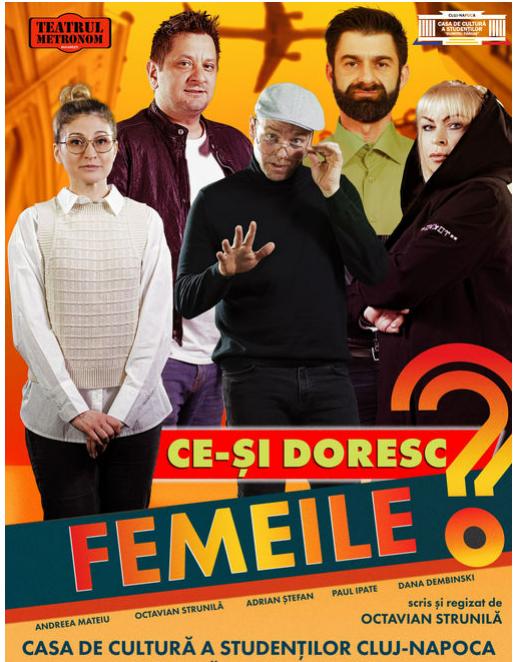Spectacolul este regizat de cunoscutul actor și regizor Octavian Strunilă, care semnează și textul piesei. „Ce-și doresc femeile?” este o comedie cu accente dulci-amare despre relații, viață și despre eterna dilemă: ce își doresc femeile de la partenerii lor? Cu o distribuție formată din Andreea Mateiu, Dana Dembinski, Octavian Strunilă, Paul Ipate și Adrian Ștefan, spectacolul promite să fie un deliciu pentru public.