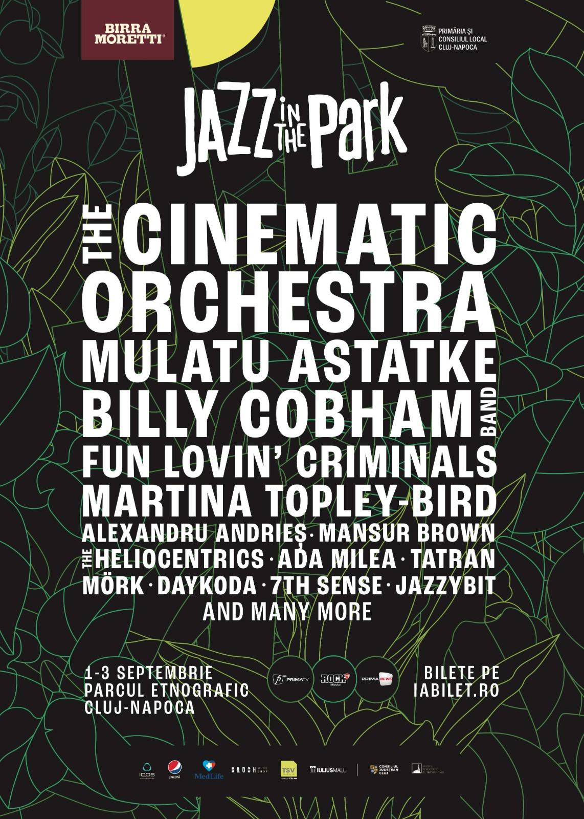- The Cinematic Orchestra este un nume pe care orice festival de jazz râvnește să-l aibă pe afiș. Trupa a fost fondată în 1999 și este reprezentanta label-ului Ninja Tune. În Jazz in the Park, mereu ne-am dorit să prezentăm trupe moderne, să arătăm spre ce a migrat jazz-ul zilelor noastre, iar TCO este un reprezentant de seamă al generației noastre. Scena muzicală britanică este poate cea mai importantă din Europa, iar ei sunt printre liderii acestei mișcări, aducând modernismul electronicii în stilul Nu Jazz. De la debutul lor, drumul i-a purtat spre multe asocieri cu filme artistice și documentare. La Jazz in the Park vor veni cu albumul „Man with a Movie Camera”, cel mai de succes album al grupului, care este defapt coloana sonoră gândită de ei pentru filmul care poartă același nume. Concertul va fi însoțit de proiecție și va închide ediția a XI-a a festivalului.