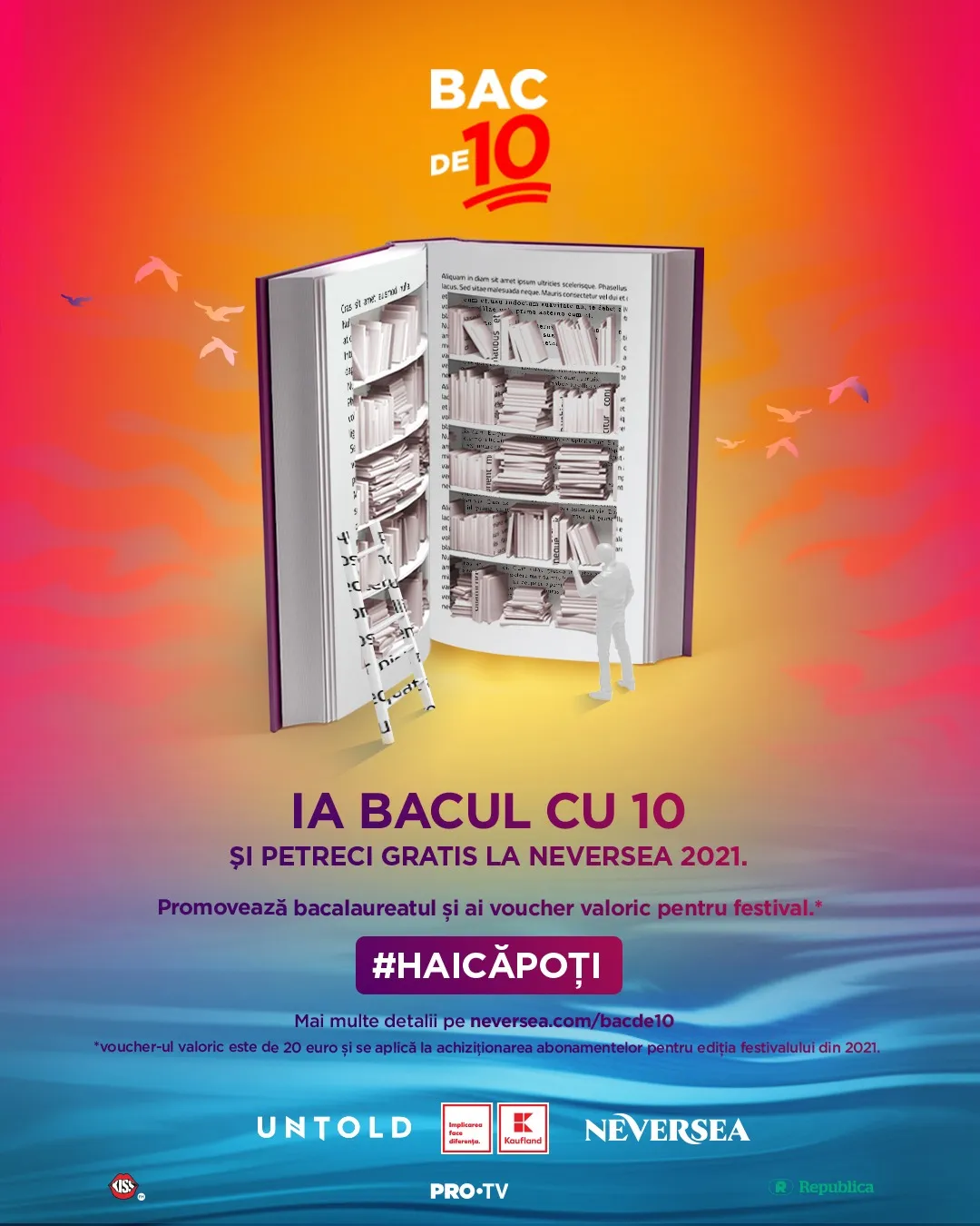 Ajunsă la cea de-a șaptea ediție, campania ”BAC DE 10” oferă tuturor absolvenților de liceu care iau nota 10 la examenul de Bacalaureat, acces gratuit la edițiile UNTOLD și Neversea din acest an.