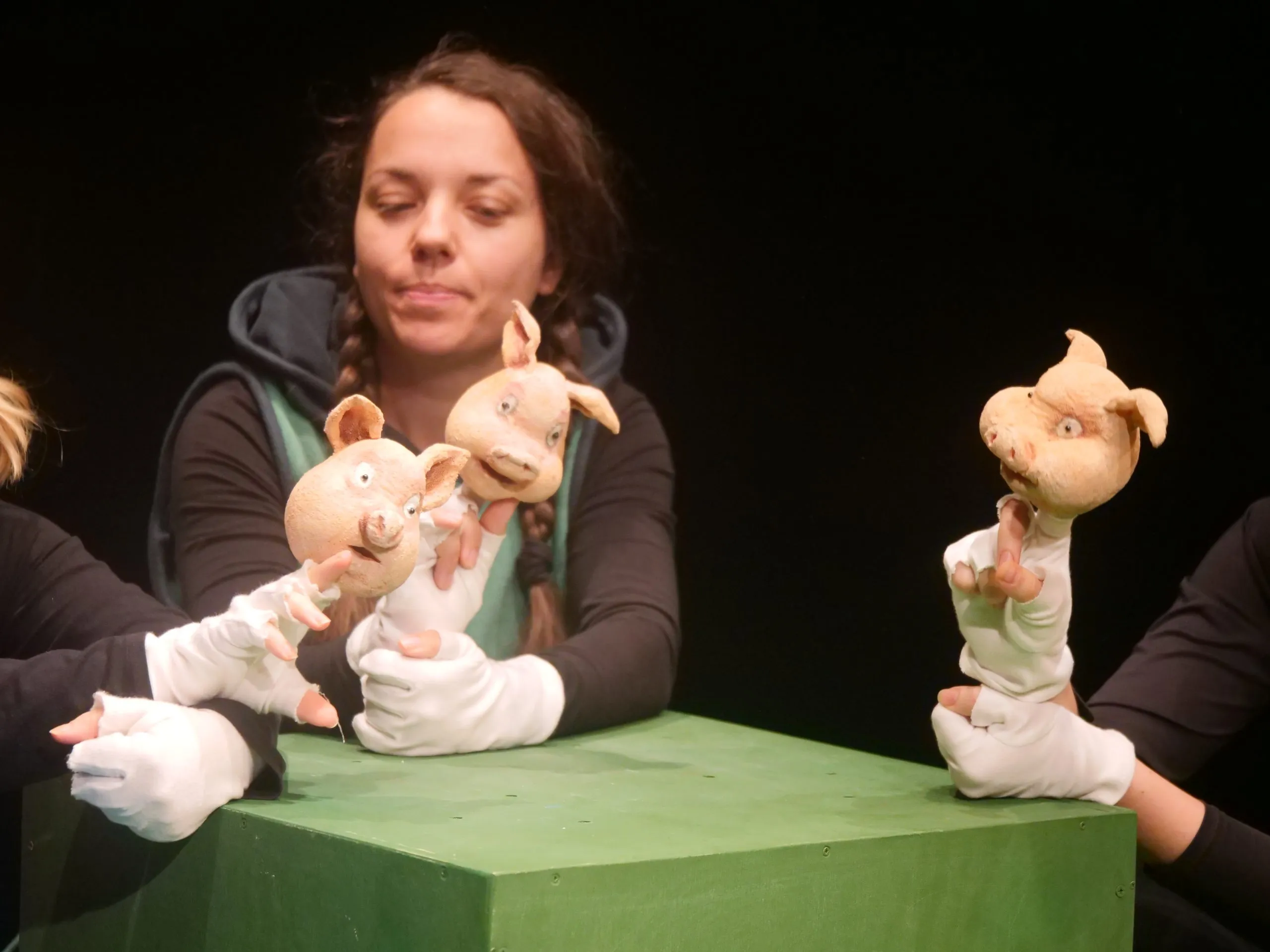 De asemenea, duminică, 5 noiembrie, de la orele 11 și 12.30 va fi prezentat spectacolul ”Cei trei purceluși”, după James Orchard Halliwell-Phillipps, în regia lui Rumi László.