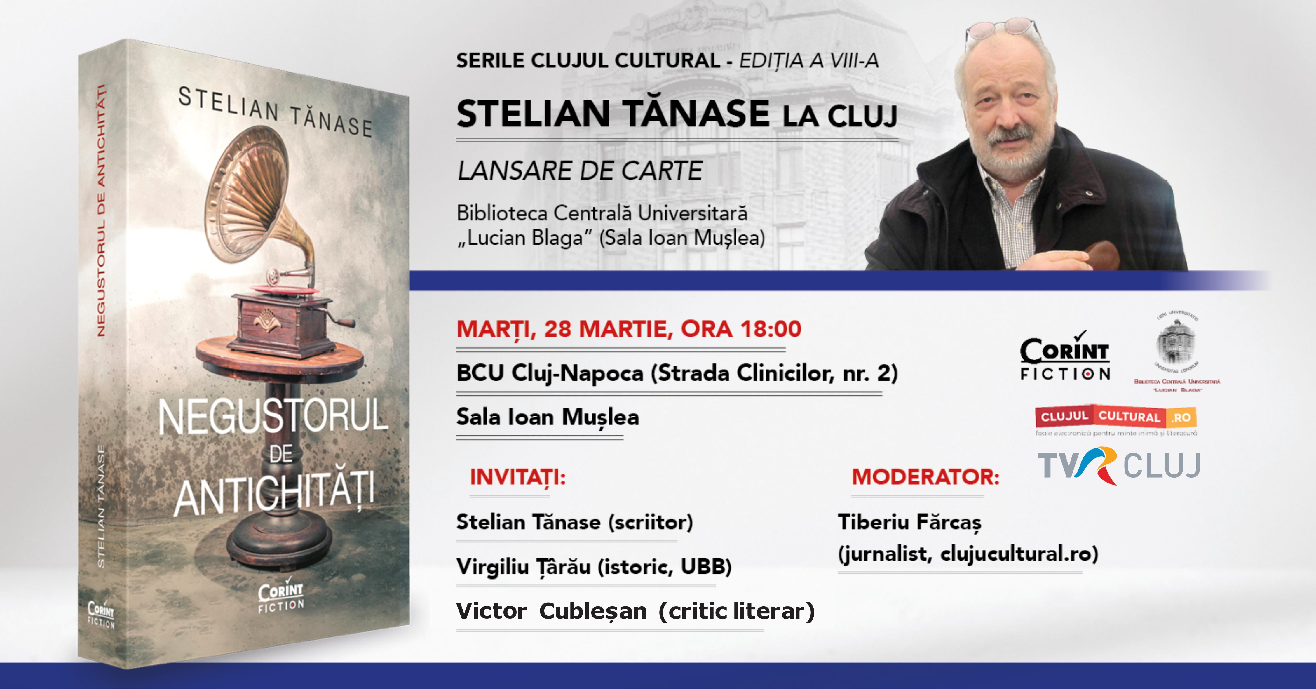 Întâlnirea cu Stelian Tănase va pleca de la o discuție despre „Negustorul de antichități”, cel mai nou roman publicat de autor la Editura Corint, în colecția Corint Fiction, coordonată de Ana Antonescu.