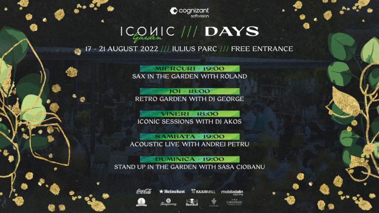 S-au încheiat marile festivaluri ale sezonului, dar îți este încă poftă de muzica bună, de distracție cu prietenii, de atmosfera chill și de preparate culinare cu povești spuse prin arome și savoare? Ai parte de Iconic Days în grădina urbană în aer liber din Iulius Parc, de miercuri, 17 august 2022, până duminică, 20 august. Intrarea este liberă pentru toți cei care vor să se încarce cu energie și să petreacă serile de august în atmosfera destinsă a grădinii urbane.