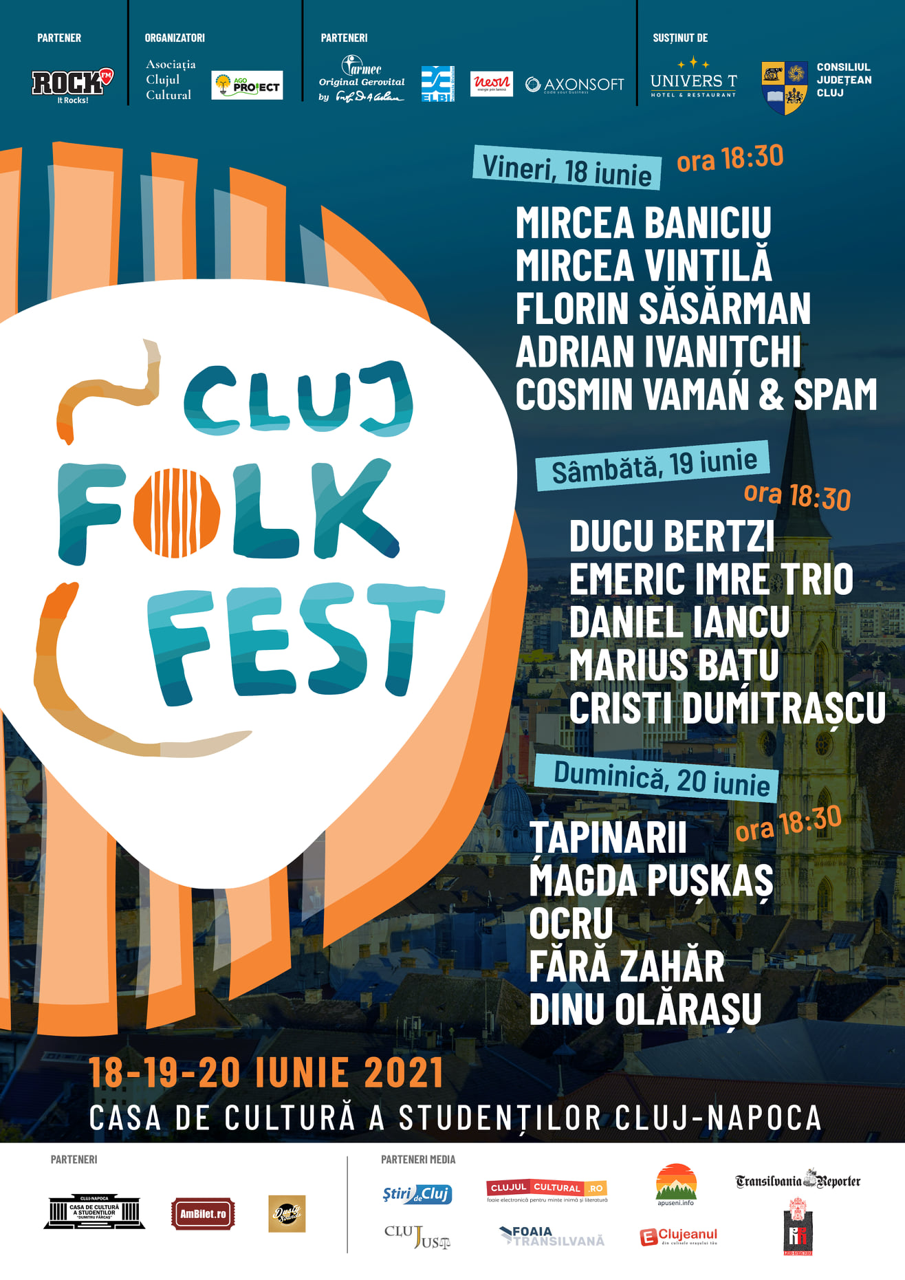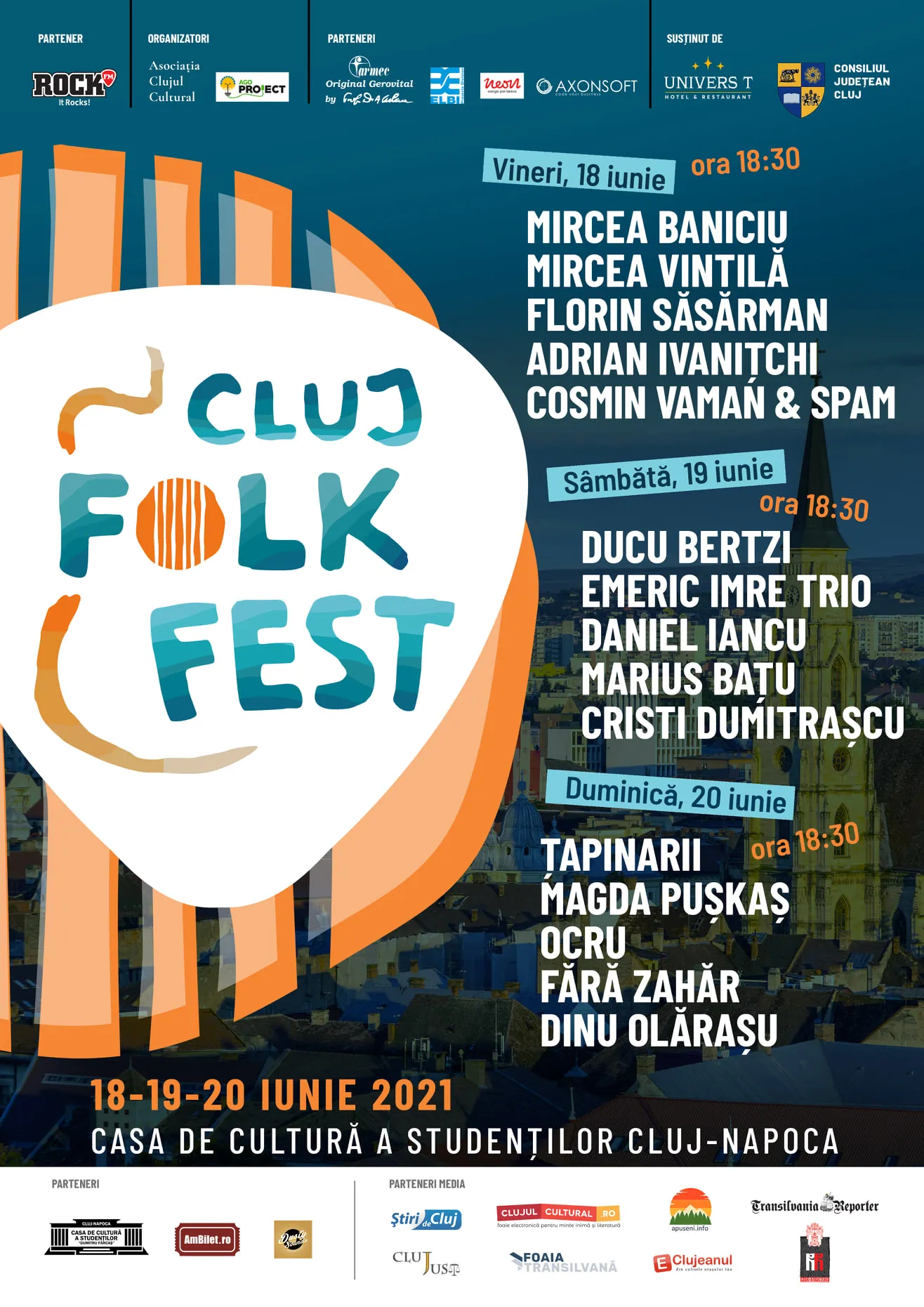 Astfel, clujenii care vor veni în acest weekend la Cluj Folk Fest vor avea ocazia să îi asculte, live, pe Mircea Baniciu, Mircea Vintilă, Emeric Imre, Magda Pușkaș, Dinu Olărașu, Daniel Iancu, Marius Bațu, Adrian Ivanițchi, Ducu Bertzi, Cristi Dumitrașcu, Florin Săsărman, Cosmin Vaman & SPAM, OCRU, Fără Zahăr și Țapinarii.