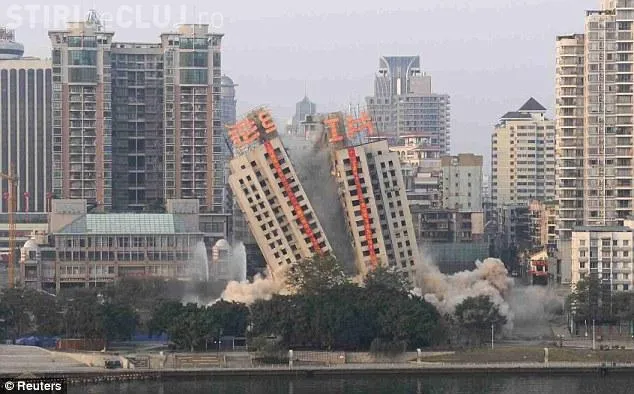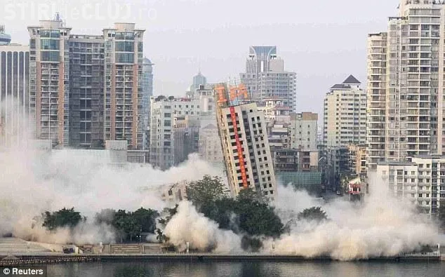 Demolarea a esuat din motive trenice, informeaza cotidianul Daily China. Expertii au vrut ca cele doua cladiri sa se rupa in doua si sa se prabuseasca, dar experimentul a esuat.