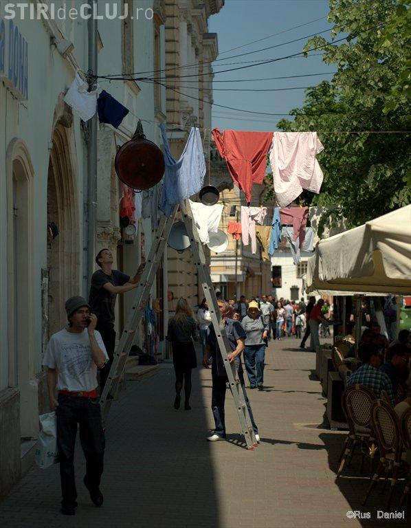Unii clujeni au fost surprinsi sa vada in plin centrul istoric haine atarnand la uscat. Politistii locali nu au aplicat amenzi pentru ca evenimentul este avizat in acest an de municipalitate, dar in 2010 lucrurile au stat altfel.