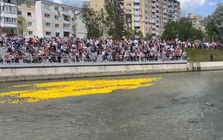 10 000 de rățuște galbene s-au întrecut pe Someș în cea mai distractivă cursă de Ziua Copilului VIDEO FOTO
