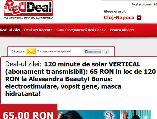 Vreti un bronz de vedeta de cinema? Acum puteti obtine un abonament cu 120 de minute la solar vertical la doar 65 de lei. Abonamentul este transmisibil, asa ca il puteti da si altcuiva. Reducerea este oferita de Red Deal.