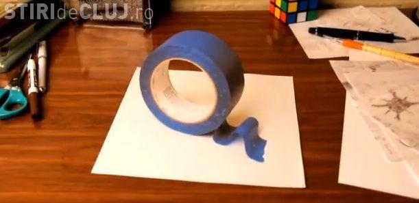 Denumit "Amazing anamorphic illusion", clipul de pe Youtube a strâns deja peste 14 milioane de vizualizări. Un simplu desen pe hârtie se dovedeşte a fi o iluzie când de fapt vezi un cub Rubik, o rola de scotch sau un tenis.
